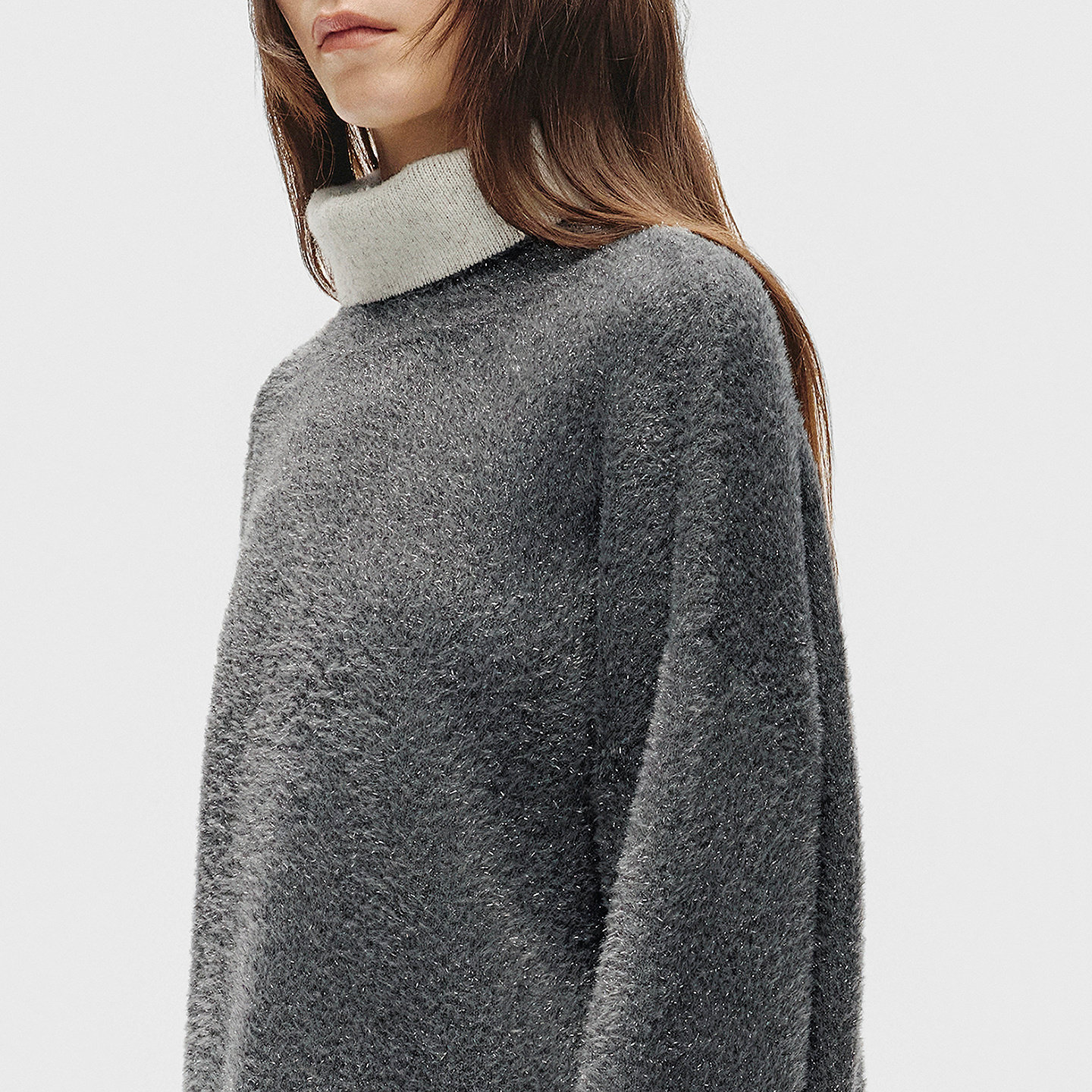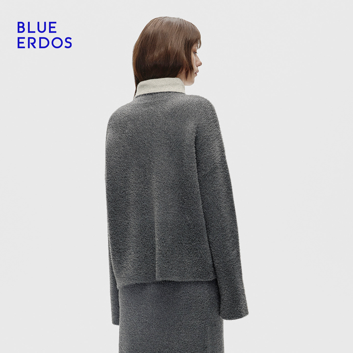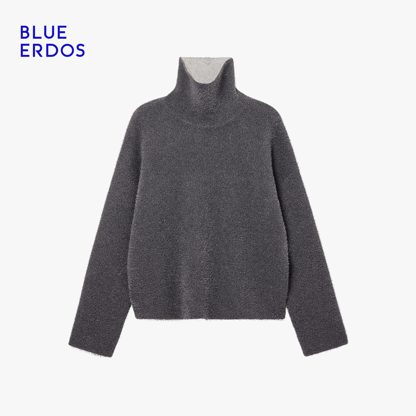 BLUE ERDOS冬季新品松弛感通勤深灰色羊毛羊绒混纺高领女针织衫
