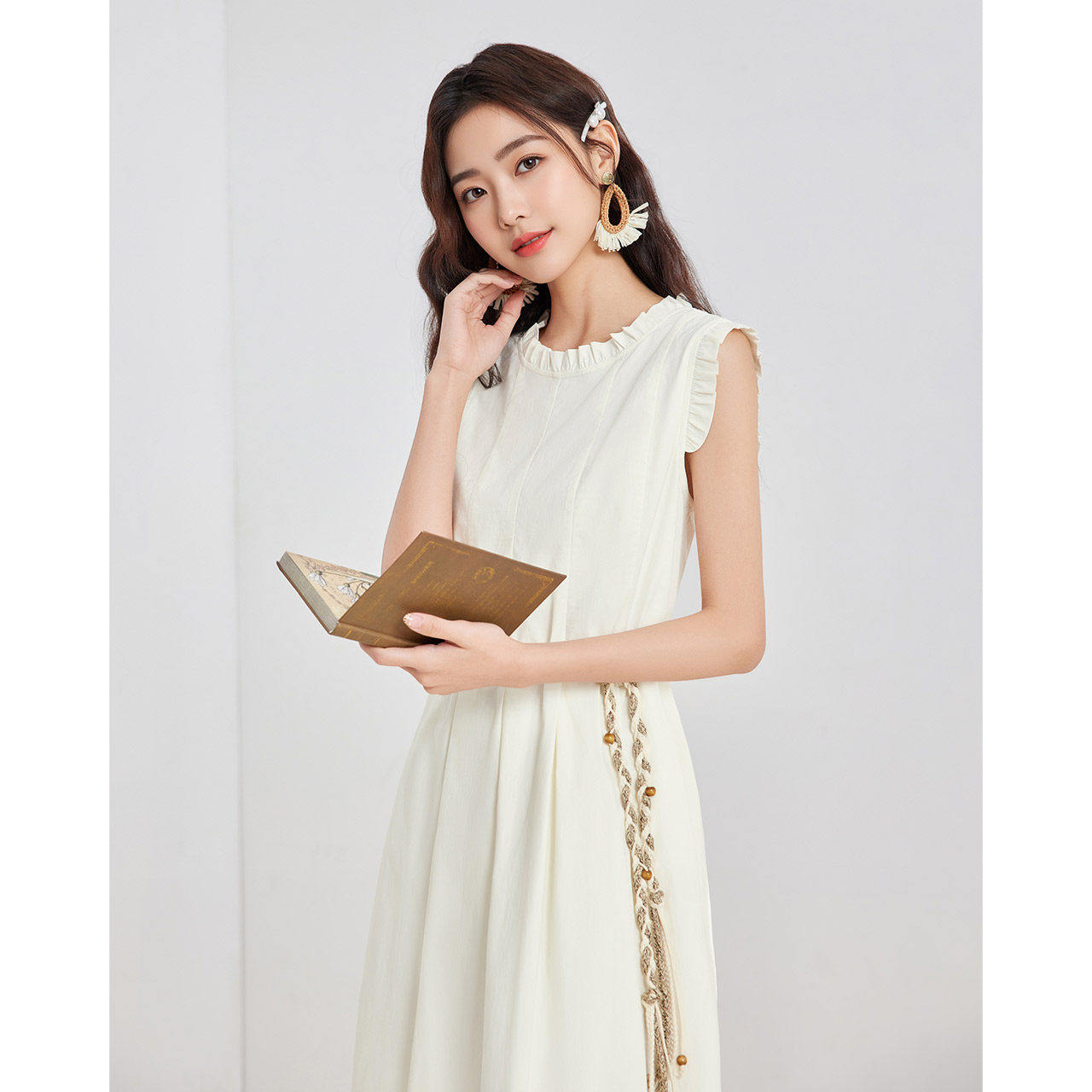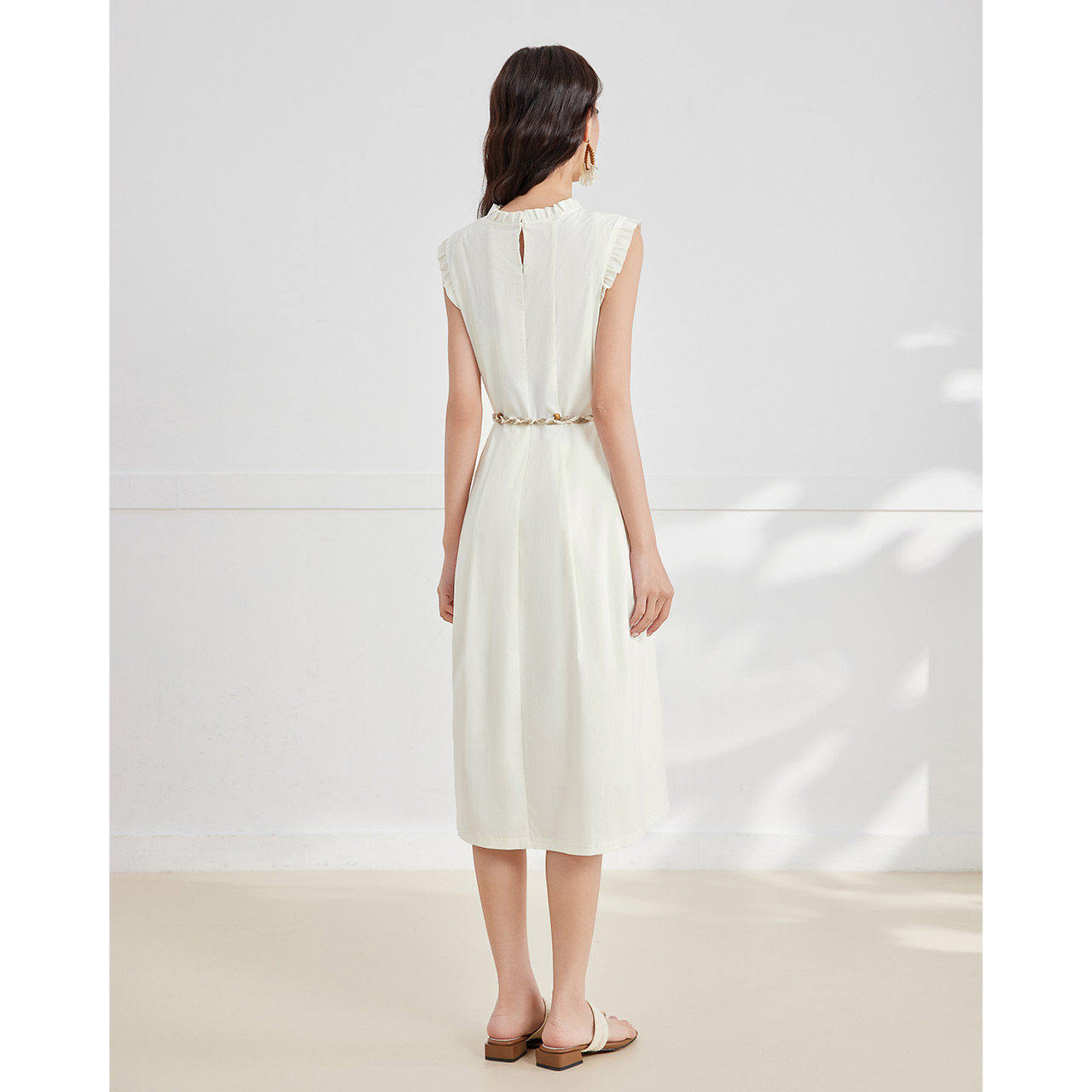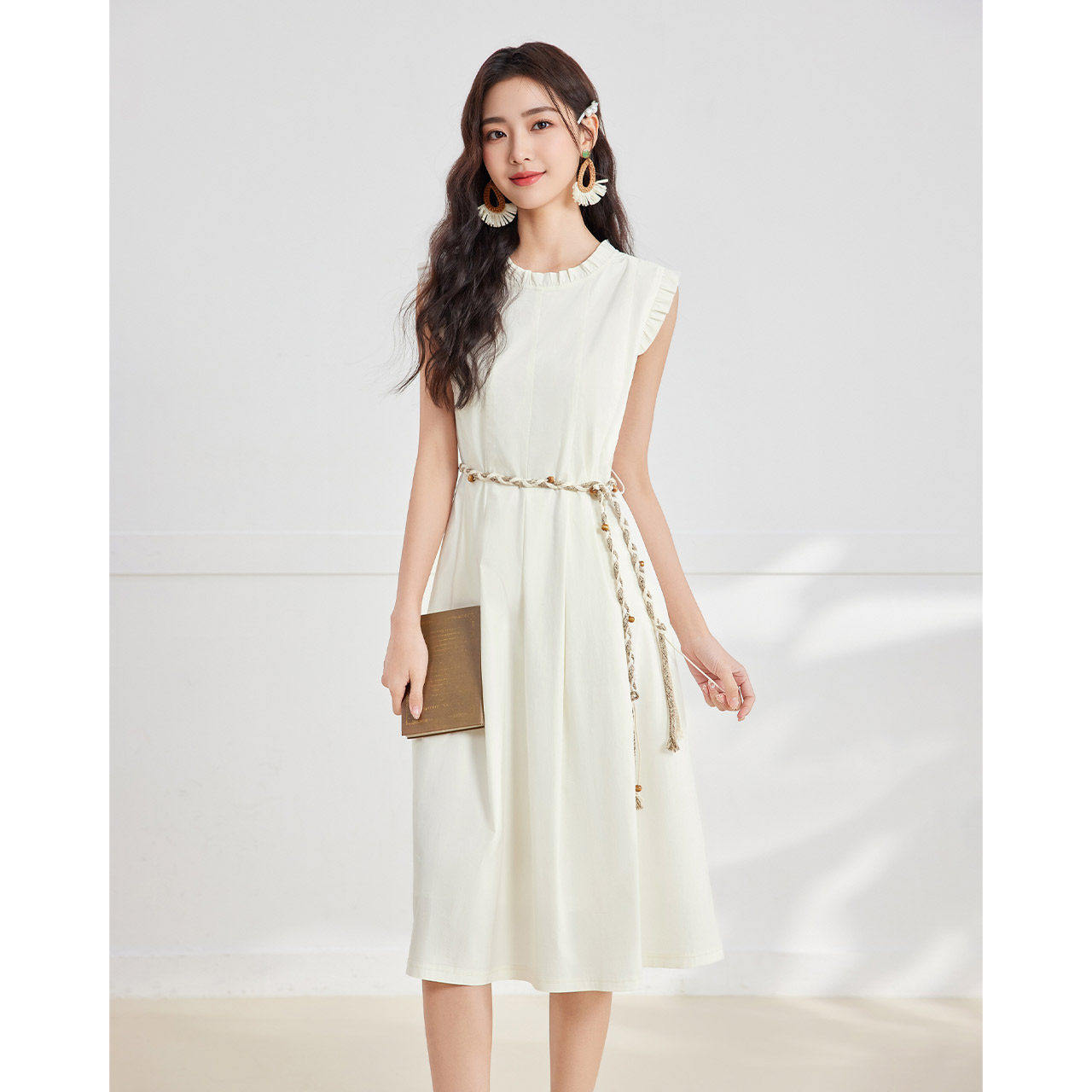 IEF/爱依服2025夏季新款韩版温柔知性通勤气质荷叶边领背心长裙