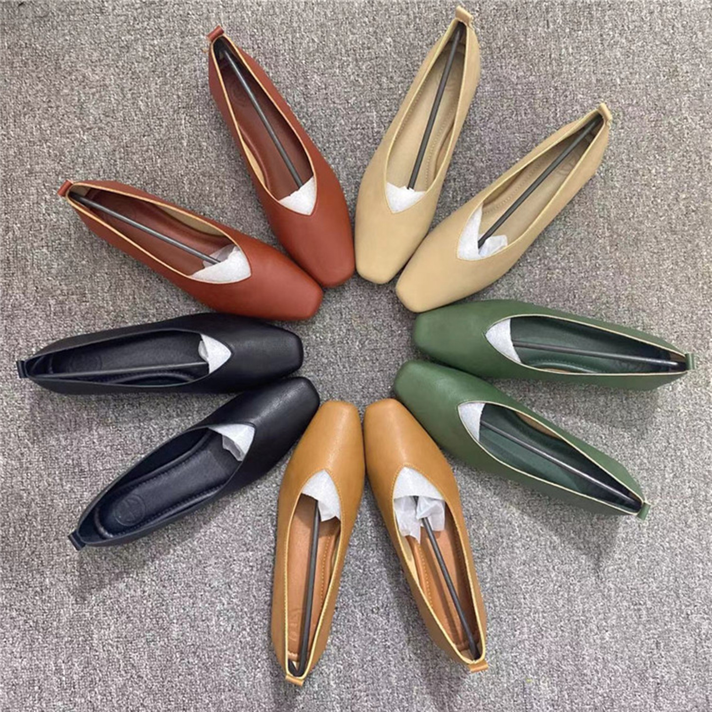 33-43春秋季新款粗跟方头单鞋软底奶奶鞋百搭舒适浅口真皮女单鞋