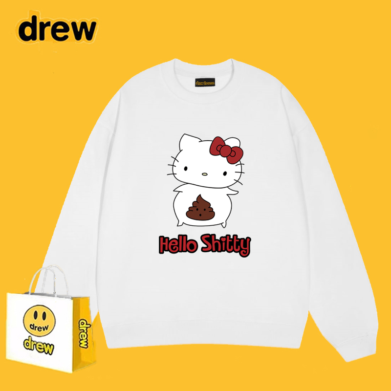 drew美式潮牌恶搞HelloKitty圆领卫衣男女休闲宽松bf秋冬加绒上衣