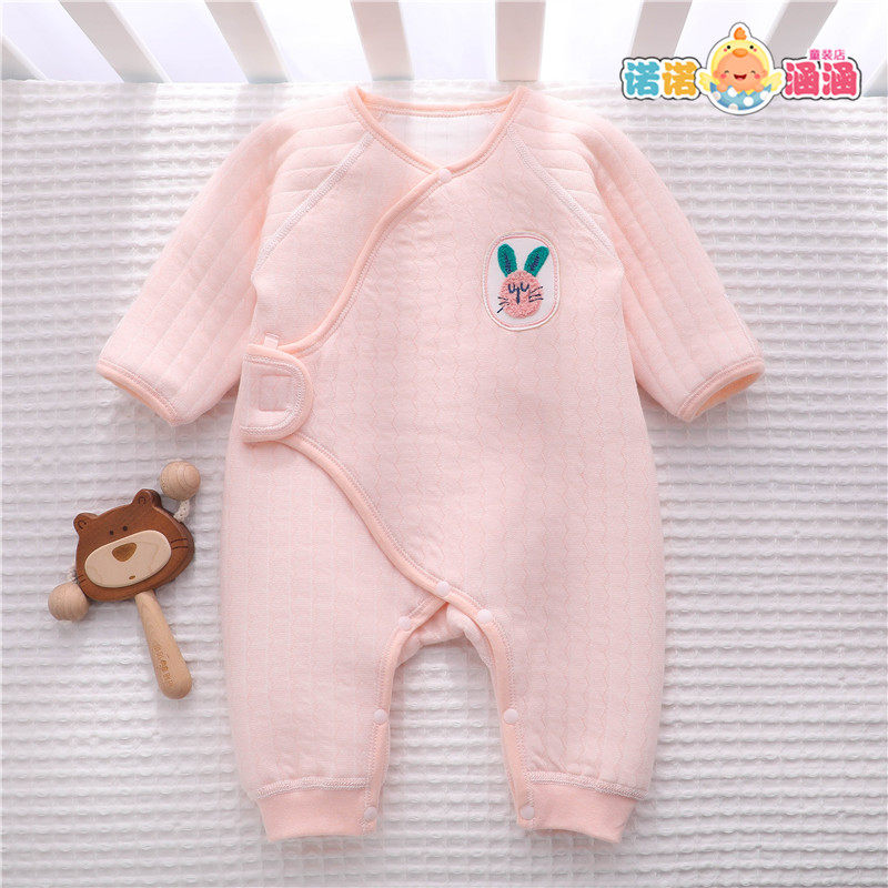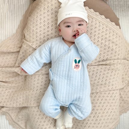 新生婴儿衣服a类纯棉夹棉保暖小月龄刚出生宝宝连体睡衣冬季棉服