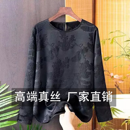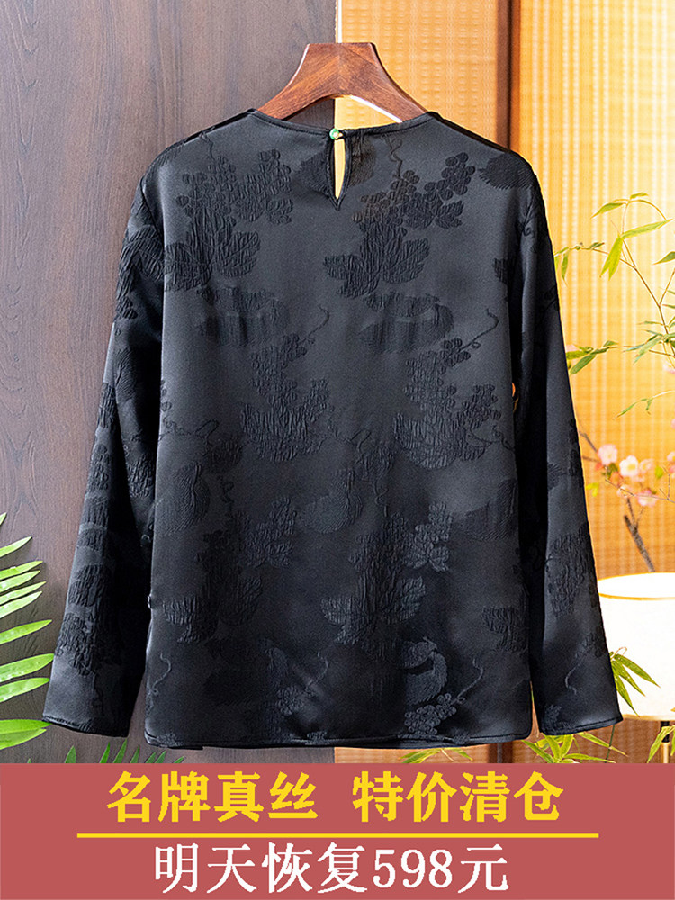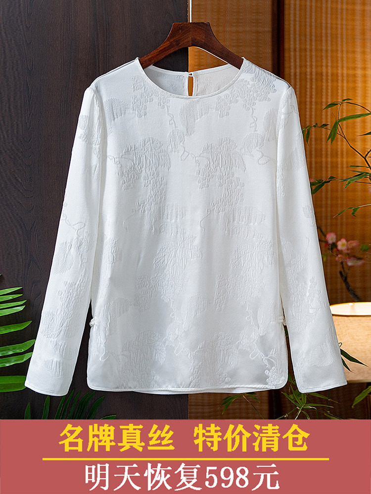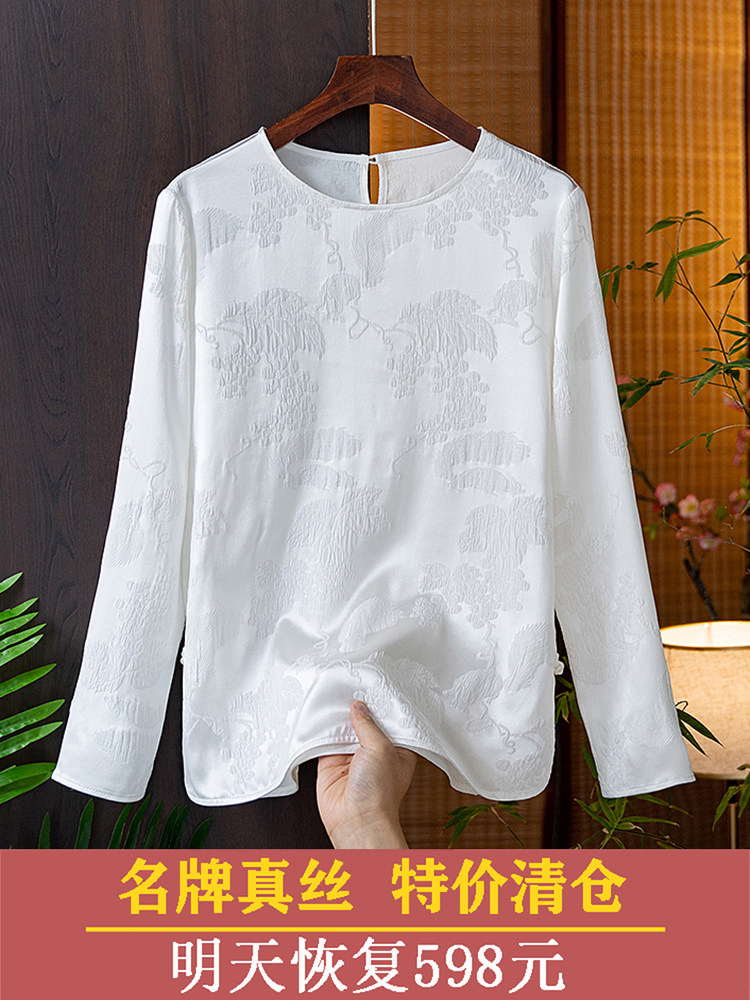 杭州重磅大牌国潮复古真丝衬衫女春季新款中式简约提花桑蚕丝上衣