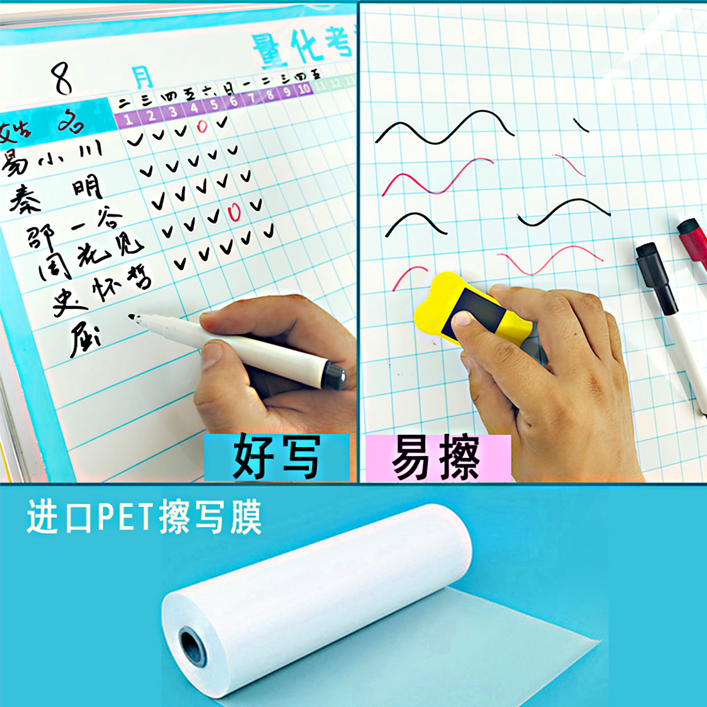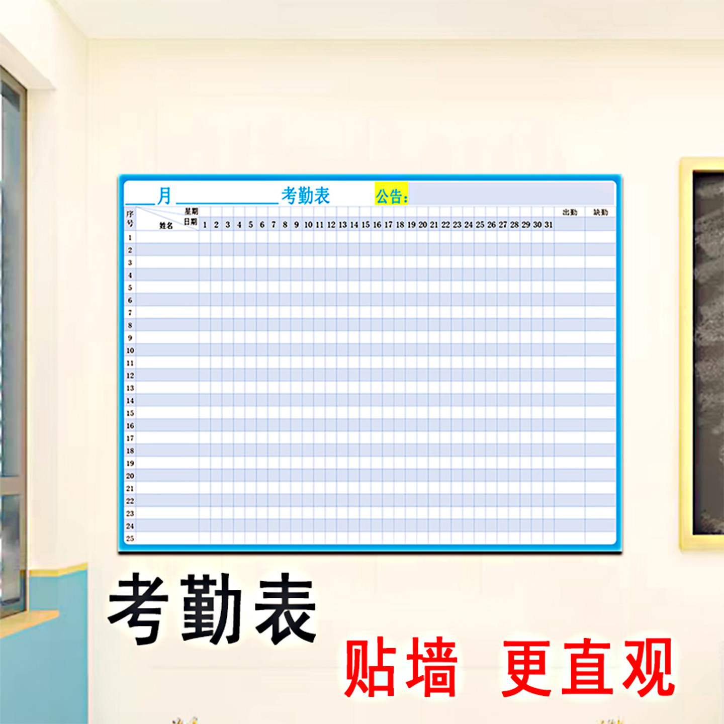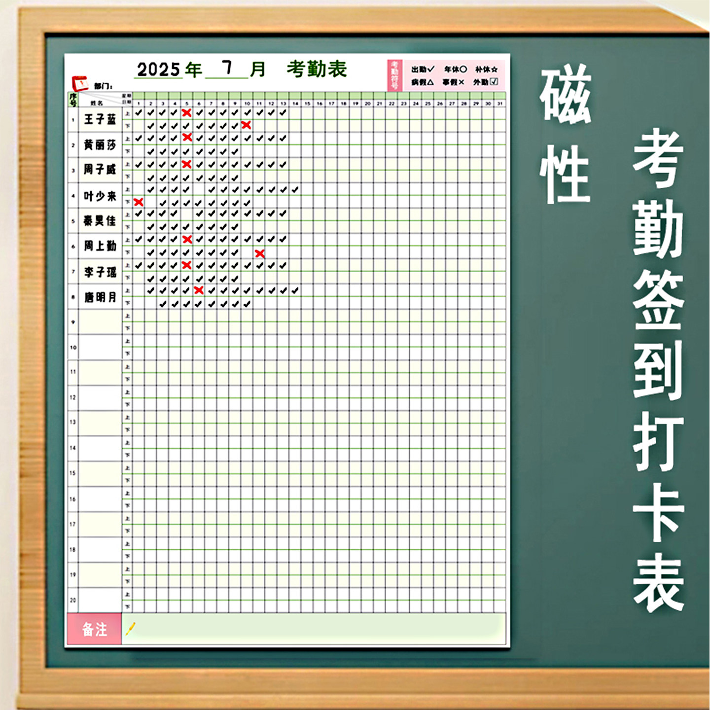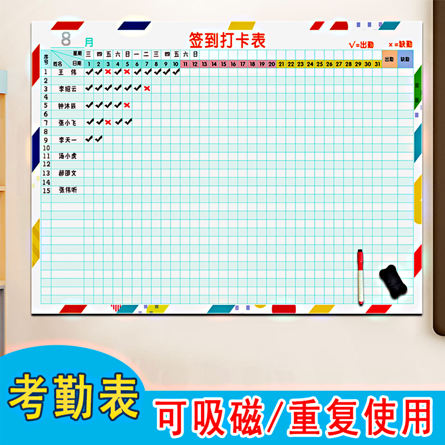 磁性考勤签到打卡表墙贴可擦写重复使用办公学员出勤量化公示白板