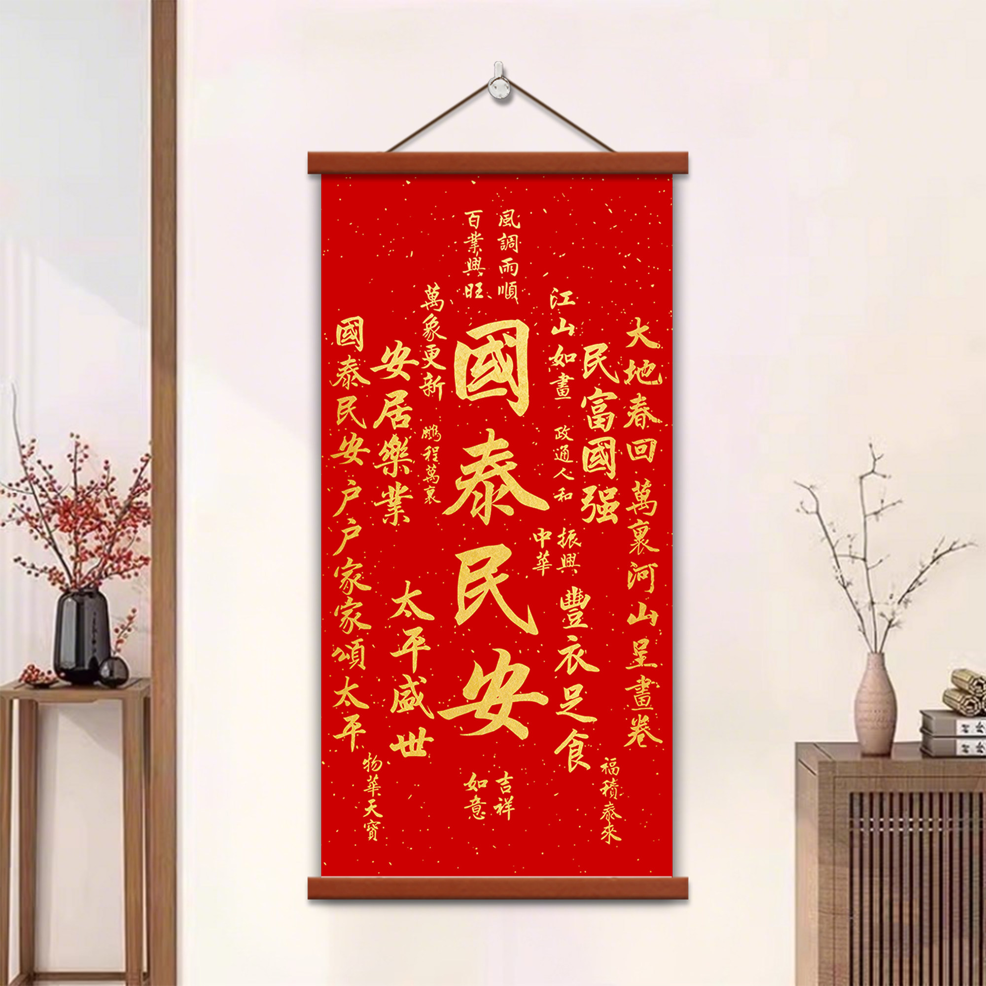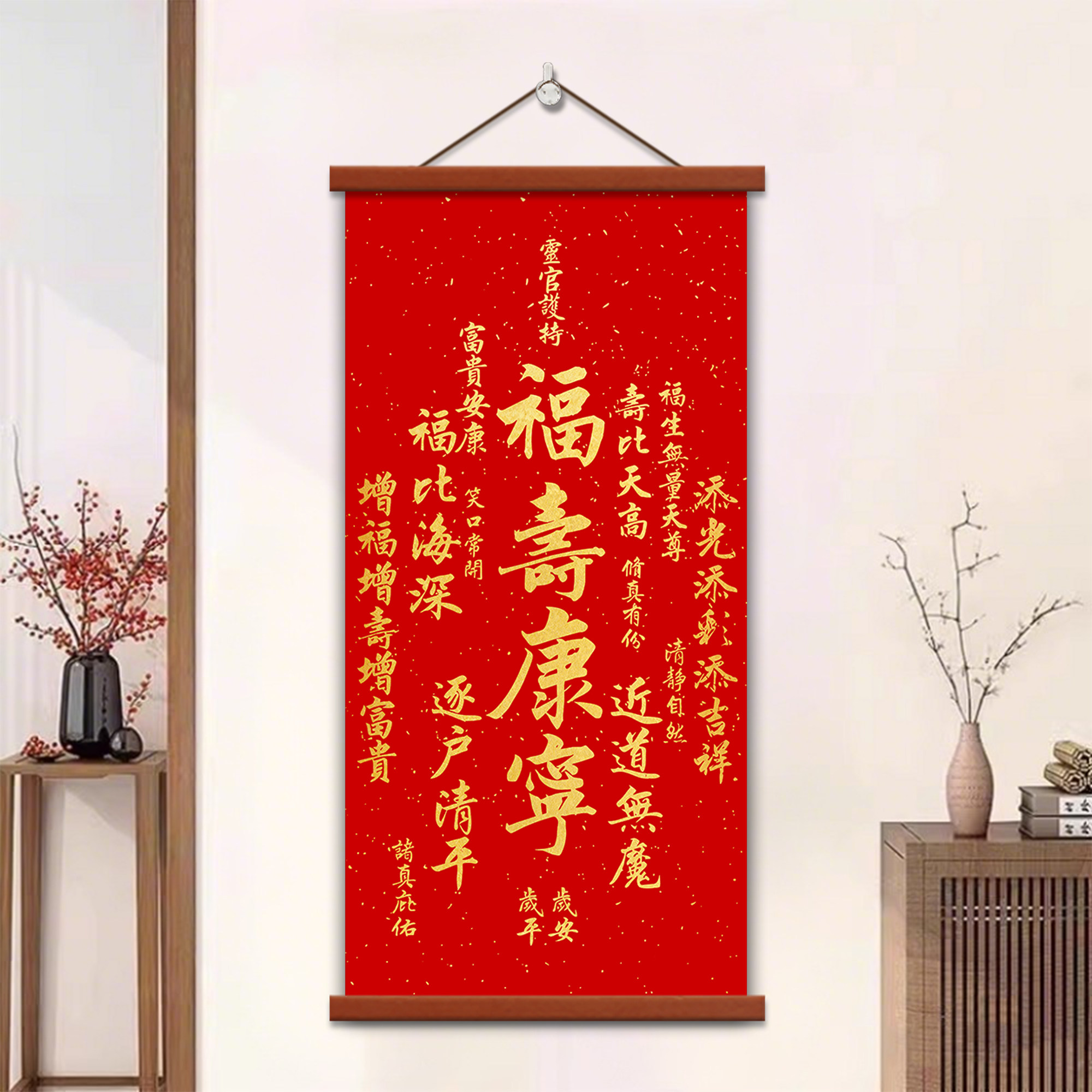 天官赐福挂画客厅装饰画福寿康宁招财进宝卷轴入户玄关中堂墙壁画