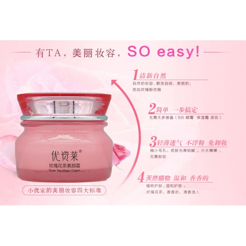 包邮正品优资莱玫瑰花茶素颜霜50g保湿水润美肤清透提亮面霜护肤
