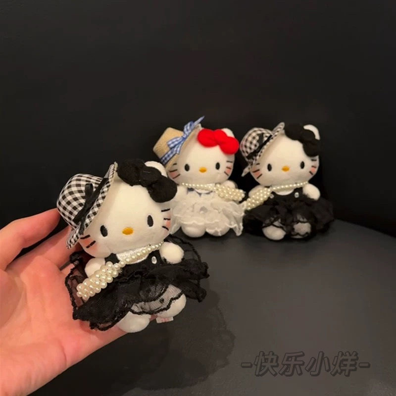 赫本风kitty猫包包挂件精致出游草帽可爱毛绒公仔玩偶钥匙扣挂饰