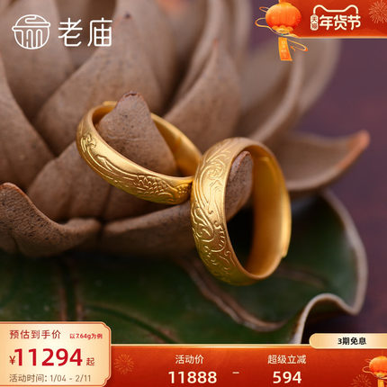 老庙黄金足金古韵金古法金龙凤呈祥男女活口对戒情侣结婚戒指正品
