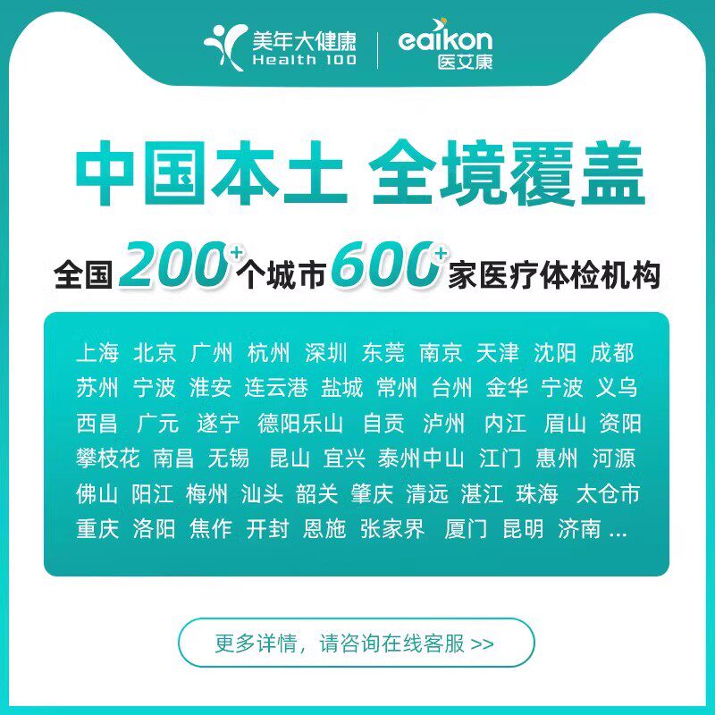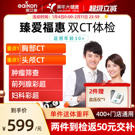 美年大健康体检套餐男女士体检中青老年父母胸部头胸CT通用体检卡