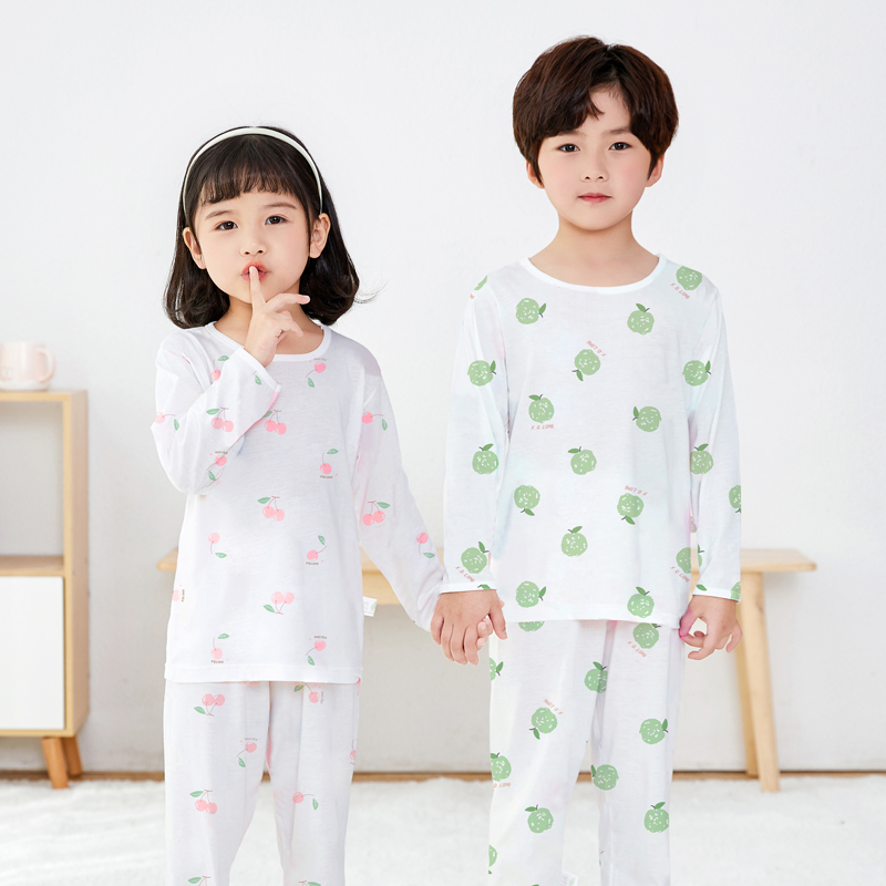 小青龙儿童夏季竹纤维长袖睡衣套装男童女童空调服中大童宝宝内衣