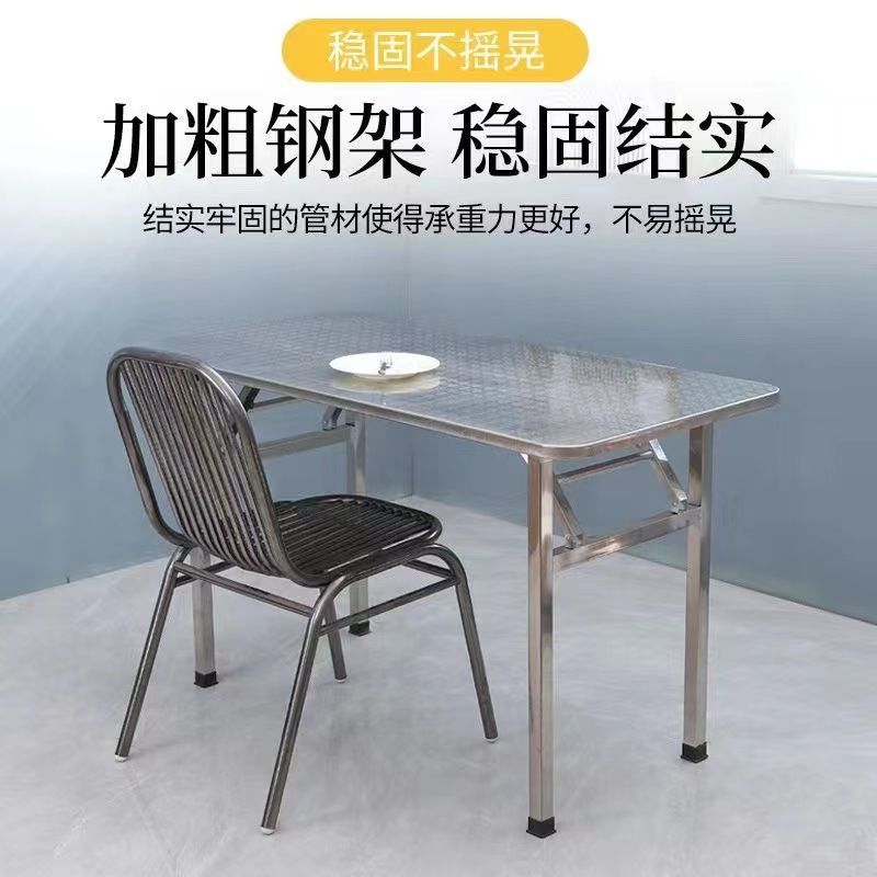 不锈钢折叠桌长方形餐桌早餐店可折叠桌子正方桌收纳户外便捷家用