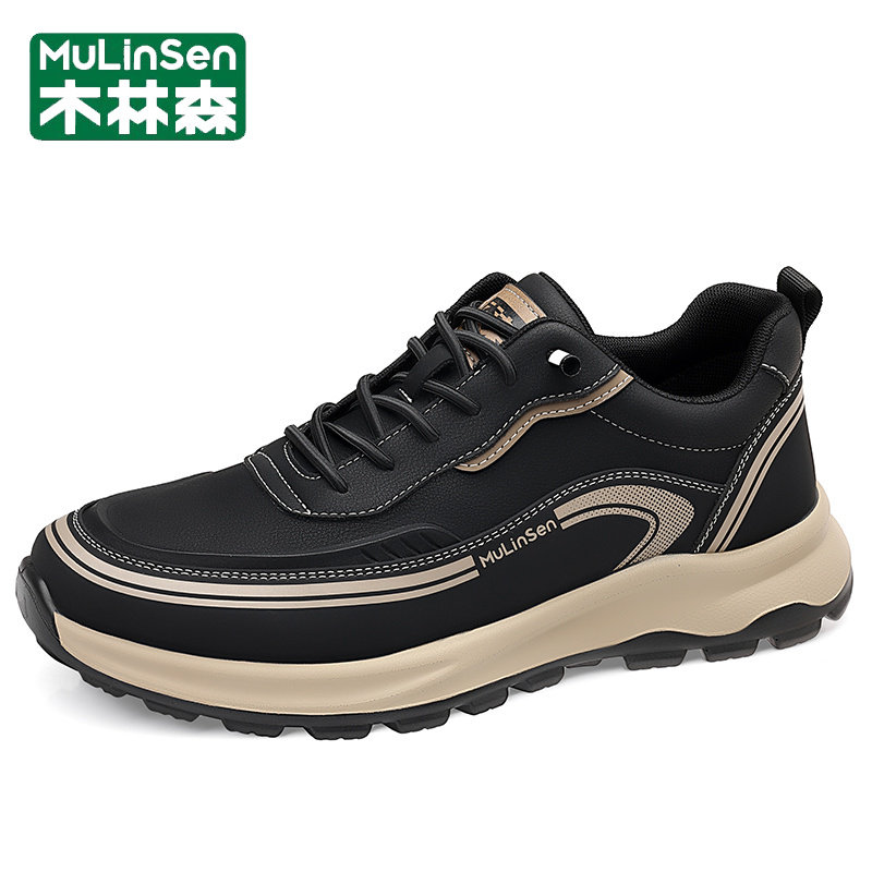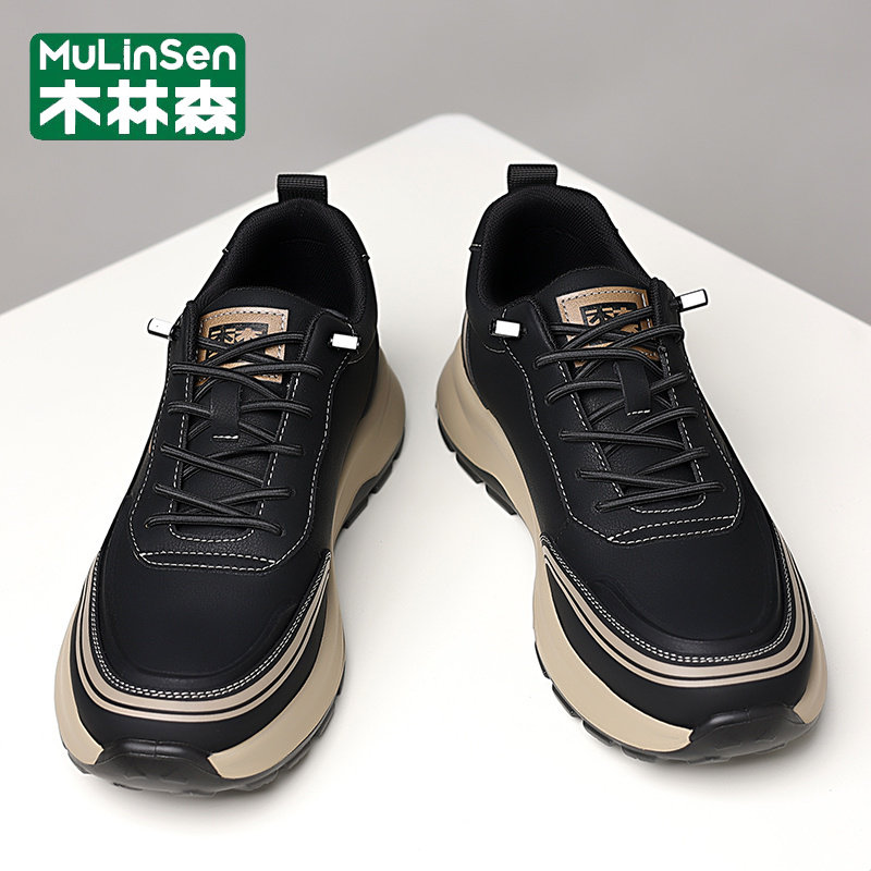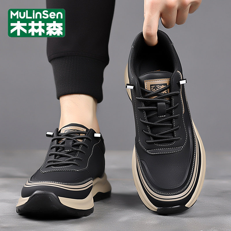 木林森男鞋2025新款冬季运动休闲真皮商务一脚蹬软底跑步老爹皮鞋