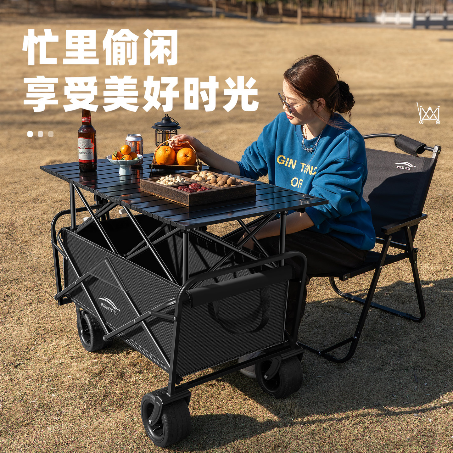 露营推车可折叠户外营地车野餐摆摊拖车野营手推快递拉车超大容量