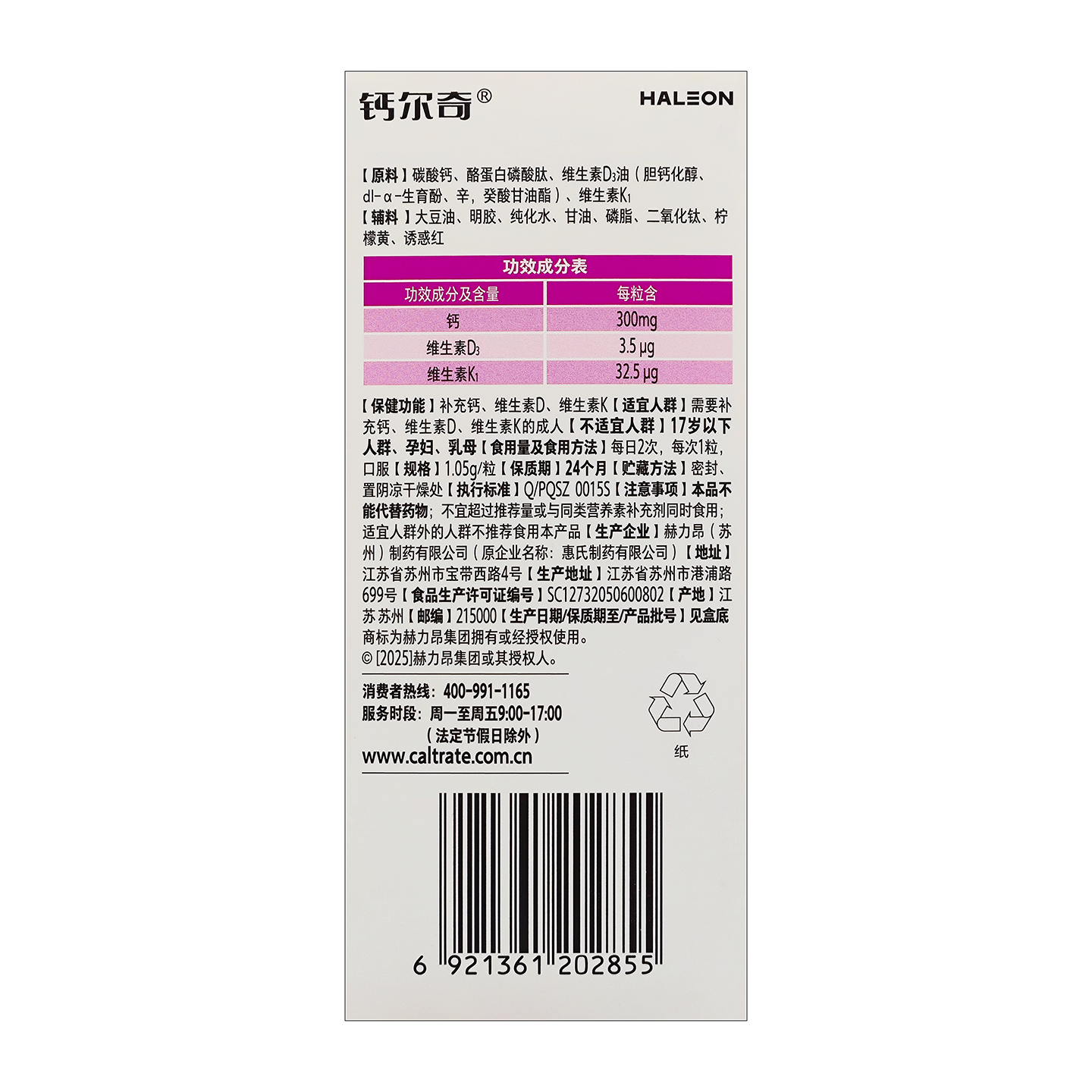 110粒可选钙尔奇R钙维D维K软胶囊成人中老年液体钙补钙胶囊正品