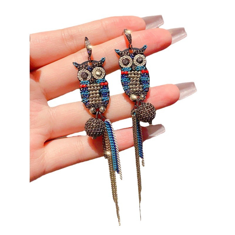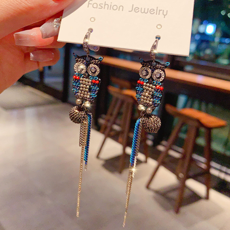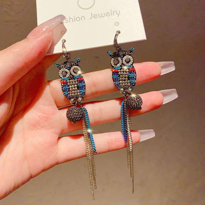 时尚复古猫头鹰长款流苏耳环高档精致新款超仙流苏小众设计耳饰