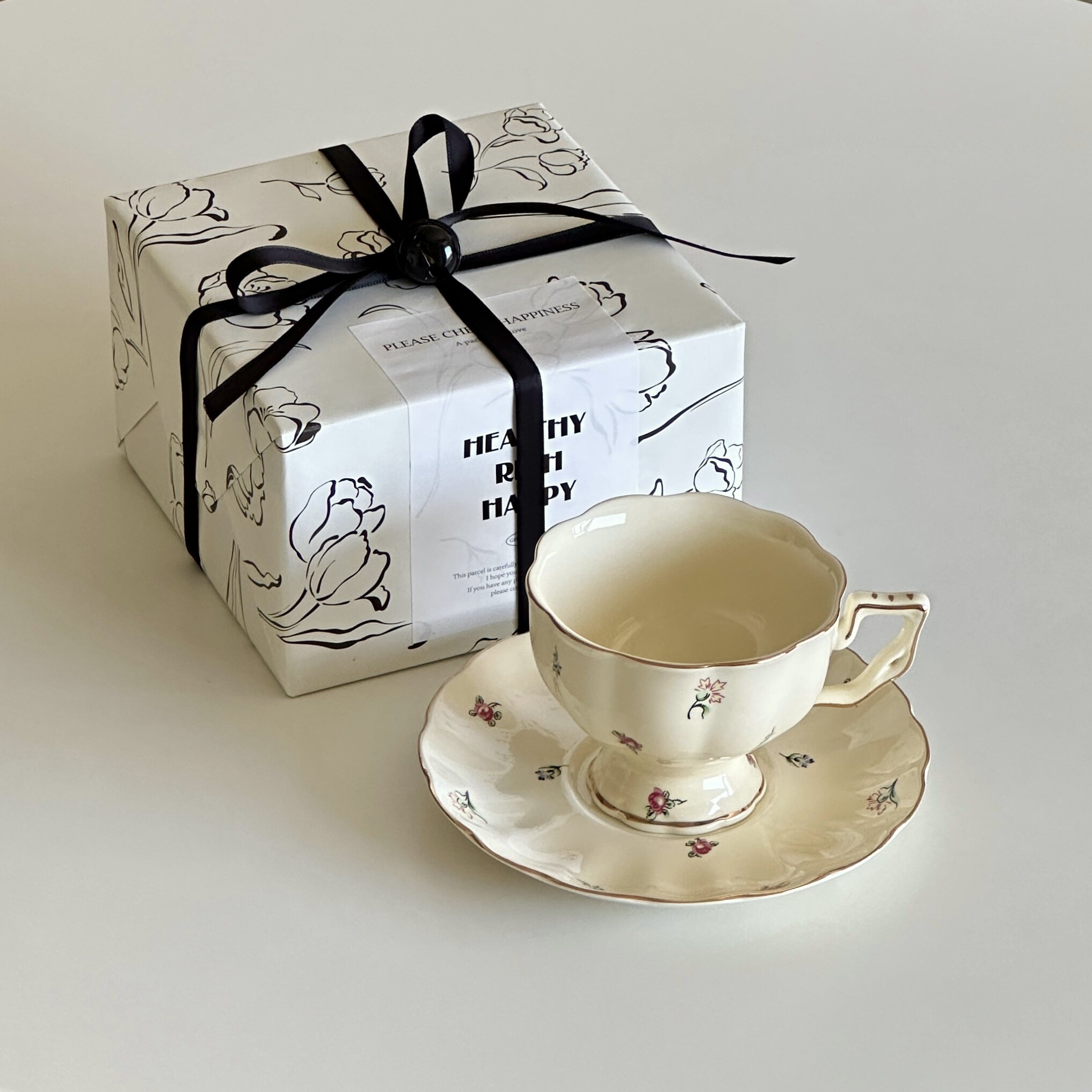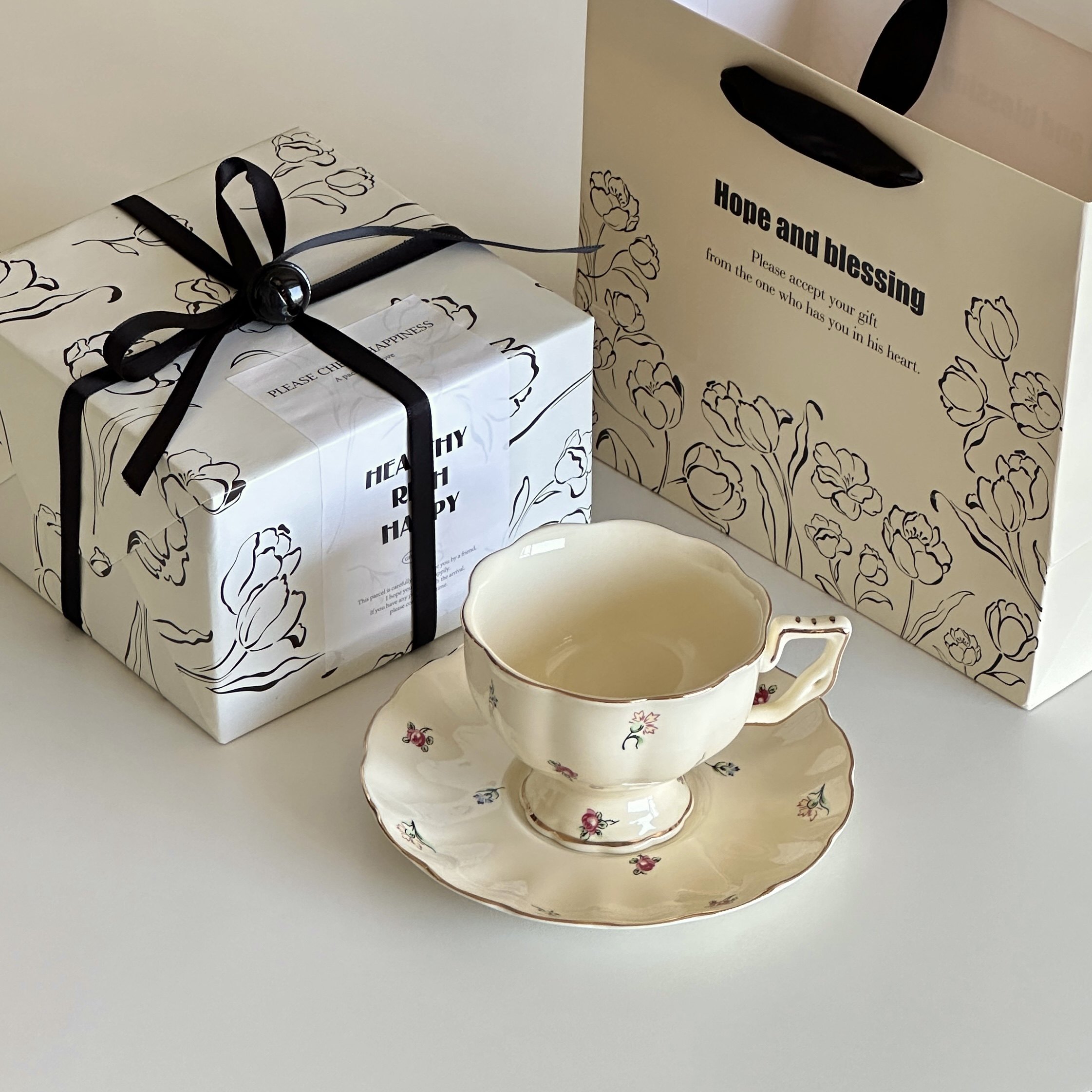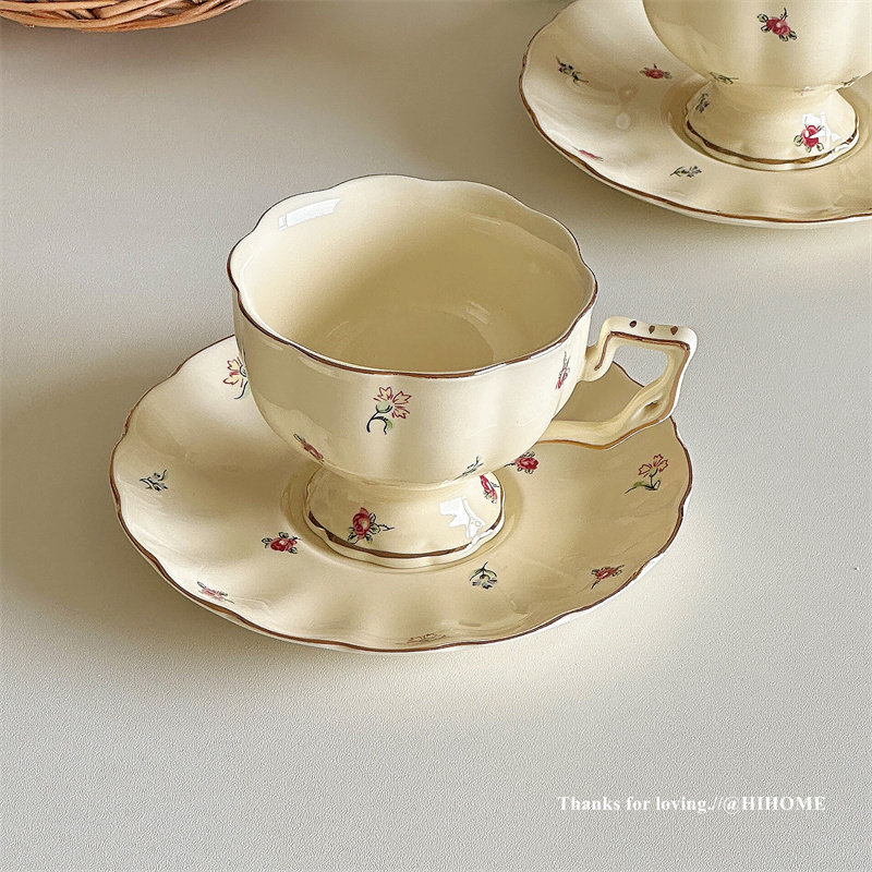博主同款精致下午茶咖啡杯碟奶油碎花陶瓷咖啡杯子礼物花茶茶杯