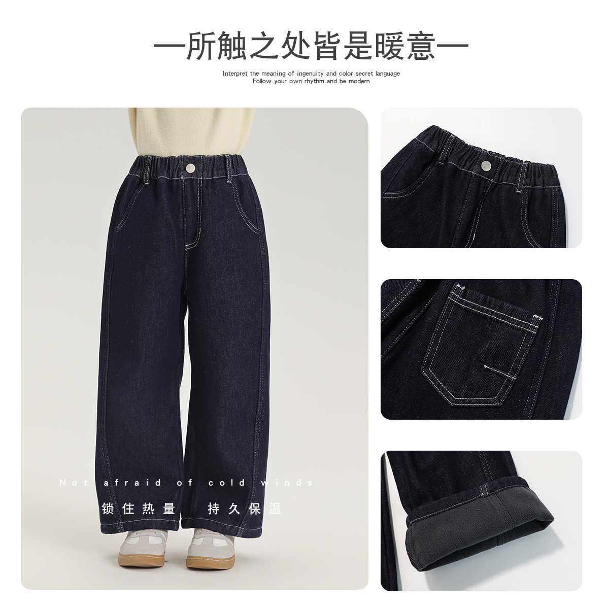 布丁哈鲁童装冬装女童裤子2025冬季新款儿童防褪色直筒牛仔裤加绒