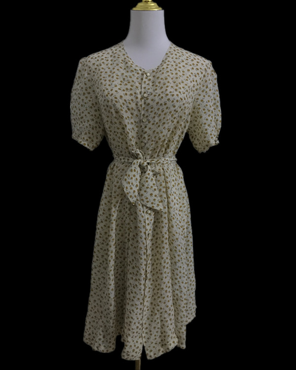 vintage古着夏季森女复古雪纺碎花薄款小清新收腰高级连衣裙Q140