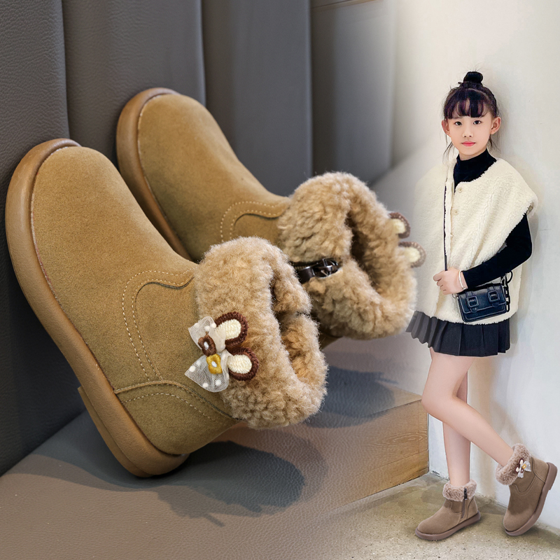 儿童靴子女童勃肯加绒短靴2025冬款小女孩洋气皮靴中大童雪地棉靴