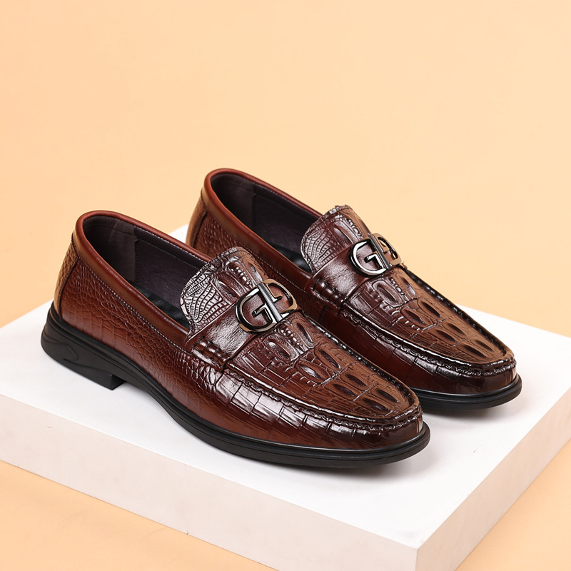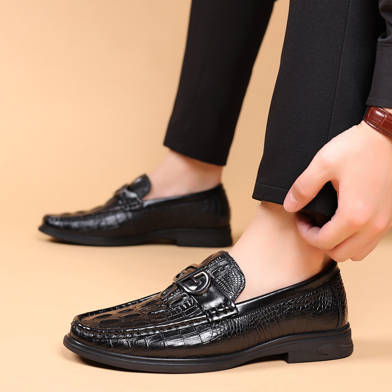 新款豆豆鞋男士软底商务休闲皮鞋男款懒人一脚蹬头层牛皮男鞋