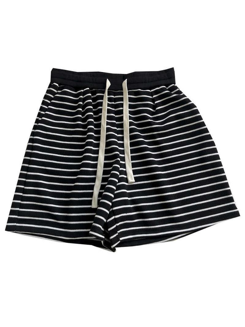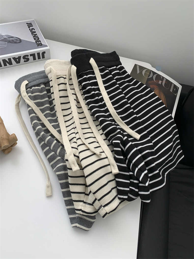 撞色条纹短裤女韩版宽松休闲裤夏季运动百搭高腰阔腿显瘦居家裤潮