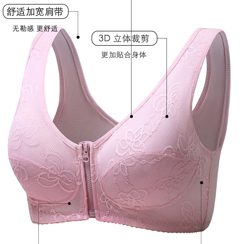 中老年妈妈拉链前扣文胸背心式大码老人无钢圈纯棉内里女士胸罩