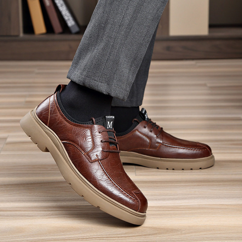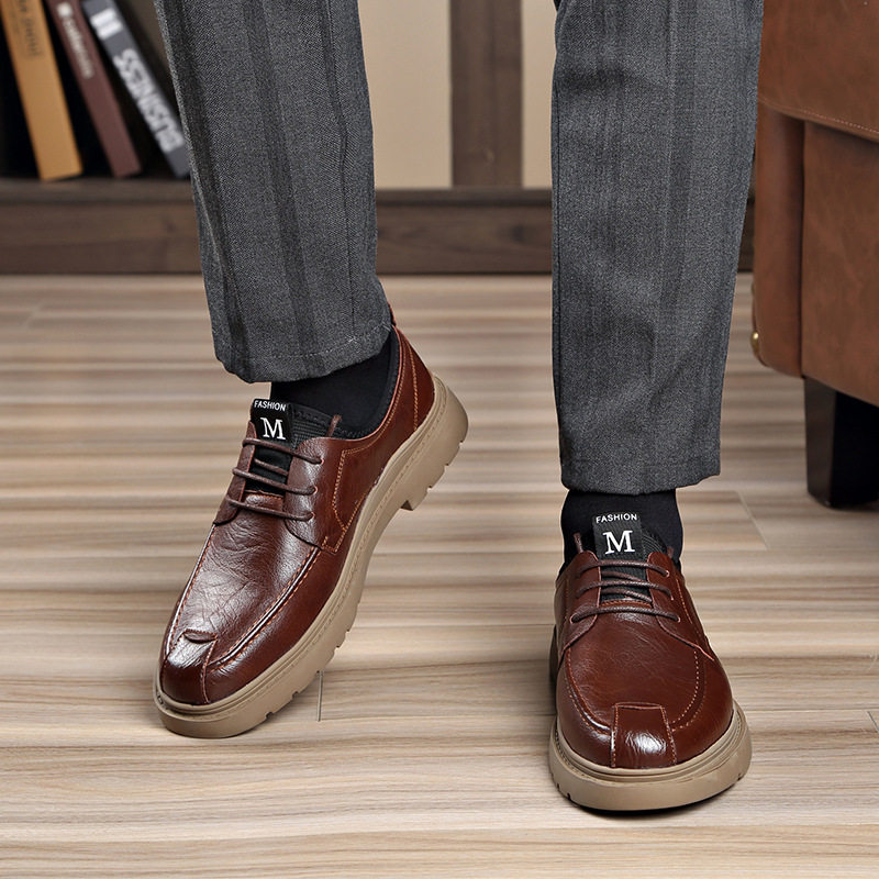 跨境男鞋冬季新款加绒保暖百搭商务休闲鞋子男士软底中年爸爸皮鞋