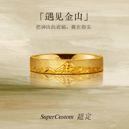 超定原创设计足金999戒指黄金定制情侣对戒手工錾刻劈花 遇见金山