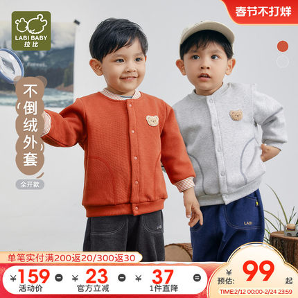 拉比儿童外套加绒保暖防风男女童2025秋冬新款运动休闲棒球服外套