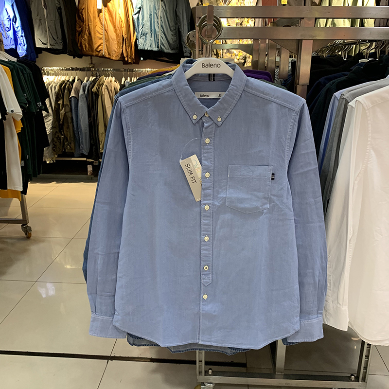 正品Baleno班尼路秋季男装纯棉修身纯色休闲牛津纺长袖衬衫衣