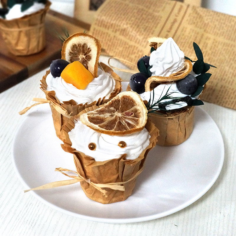 Lmdec.仿真小甜品 纸杯奶油蛋糕道具 美食摄影道具店铺装饰摆设