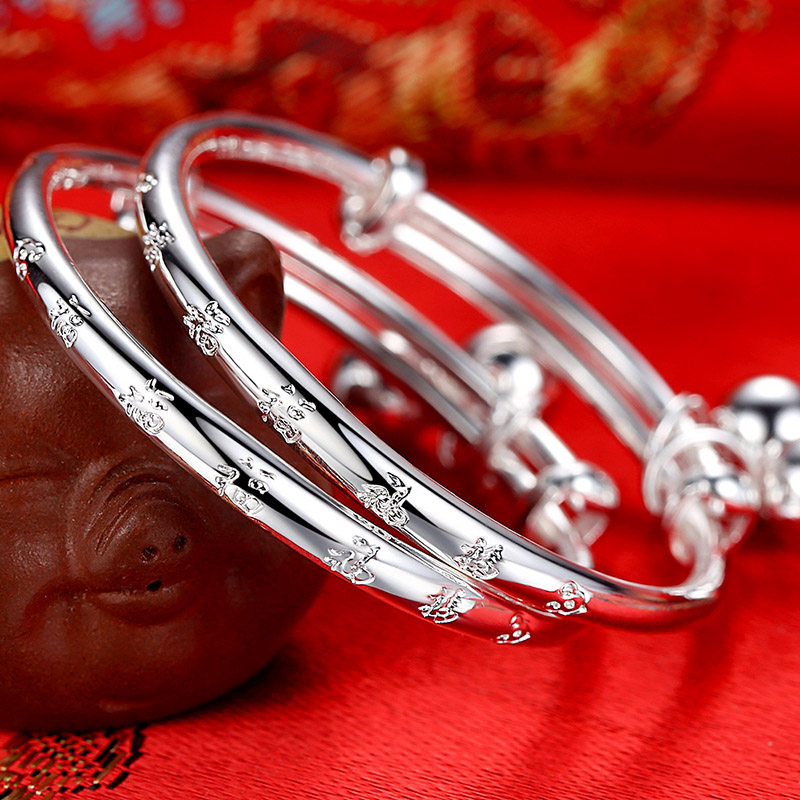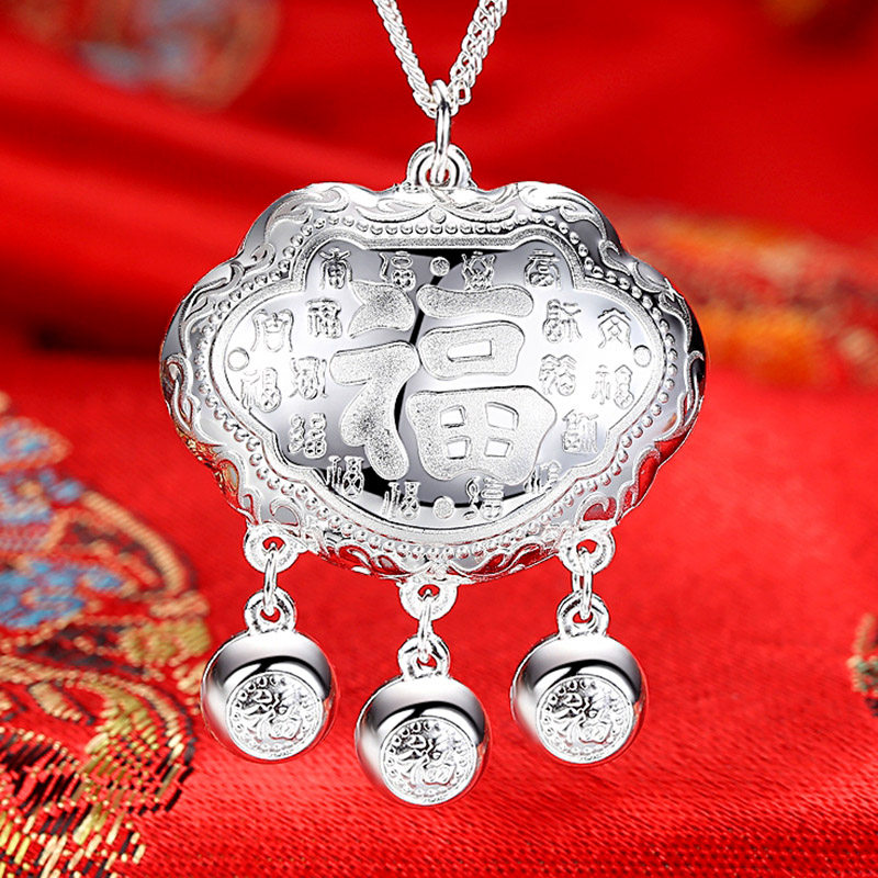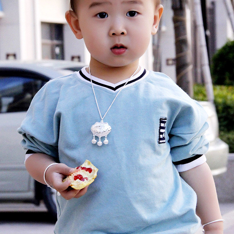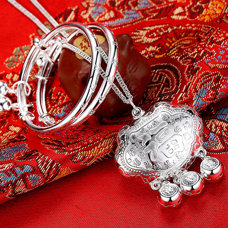 宝宝银手镯婴儿童银饰品长命锁S999纯银锁小孩子满月百日套装礼盒