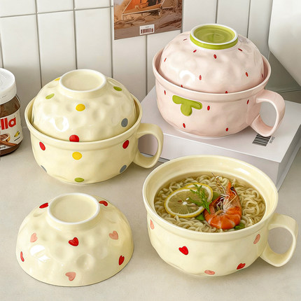 奶油风泡面碗带盖高颜值个人专用方便面碗陶瓷学生打饭碗筷套装