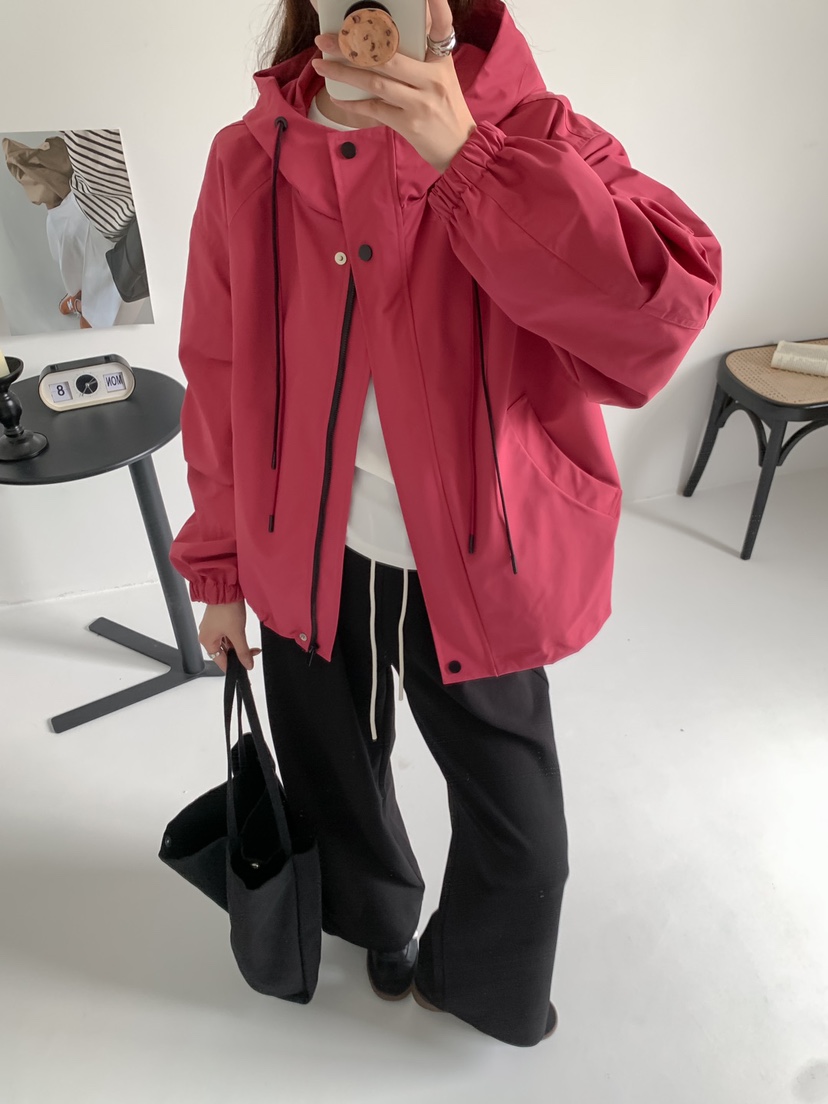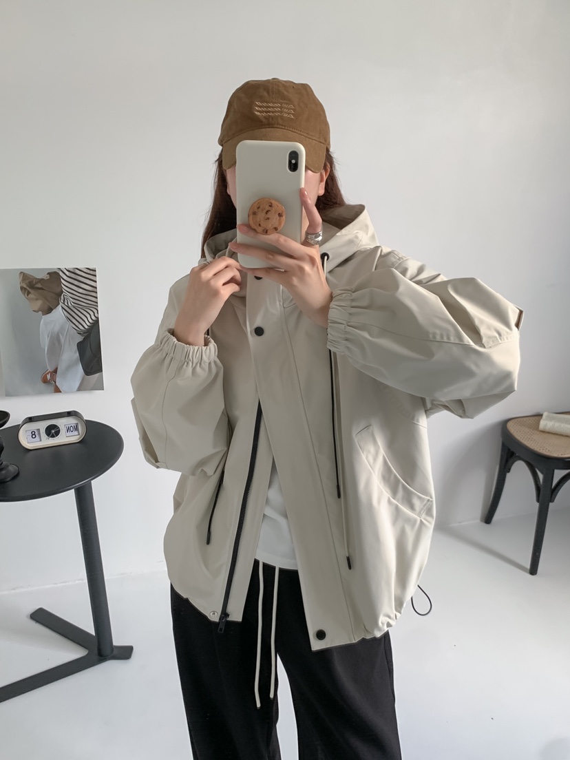 绝dui实穿型~冲锋衣外套女秋季2025新款宽松休闲工装短款连帽风衣
