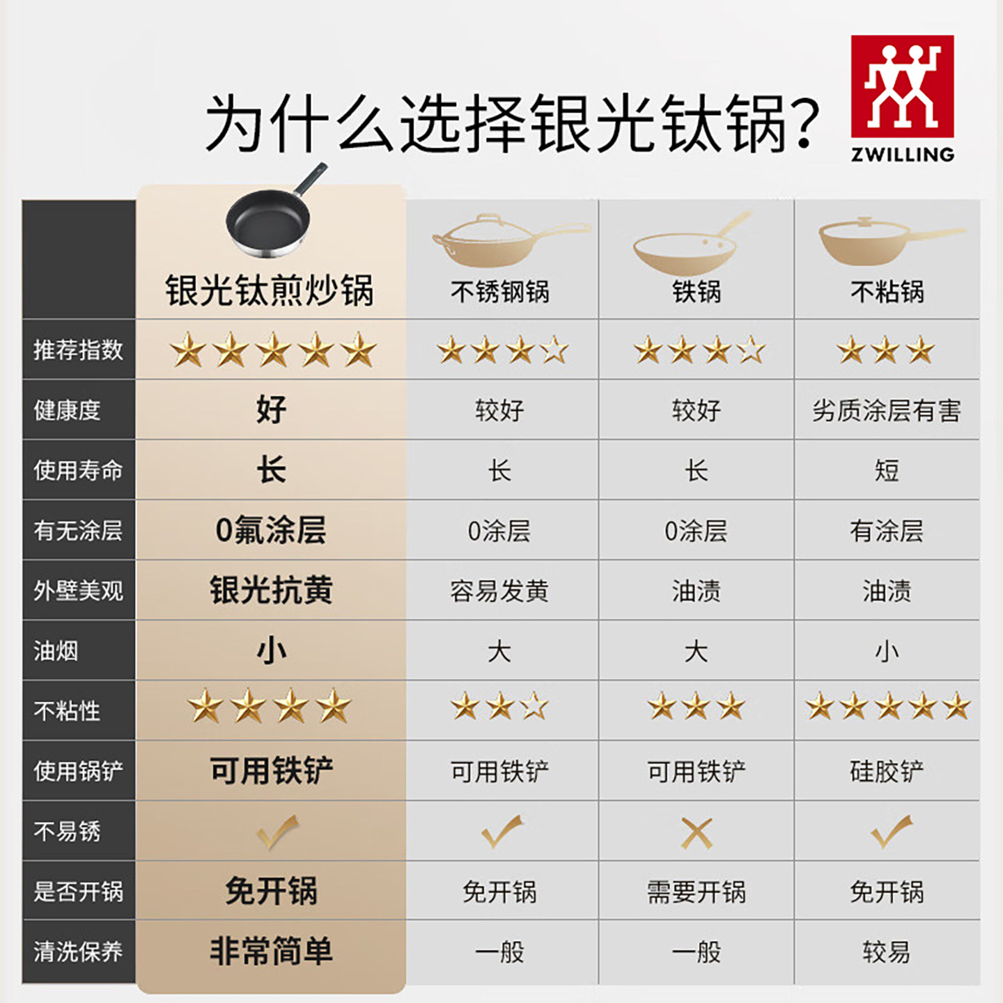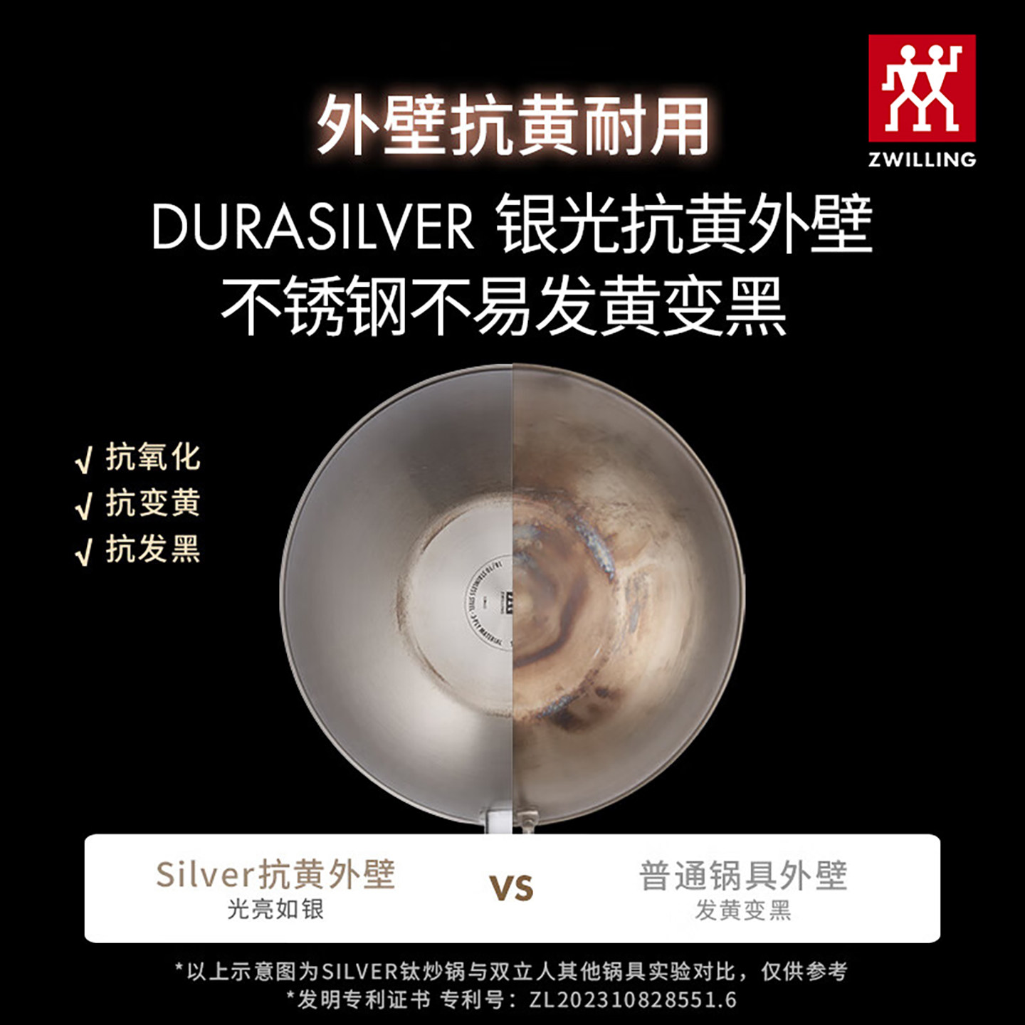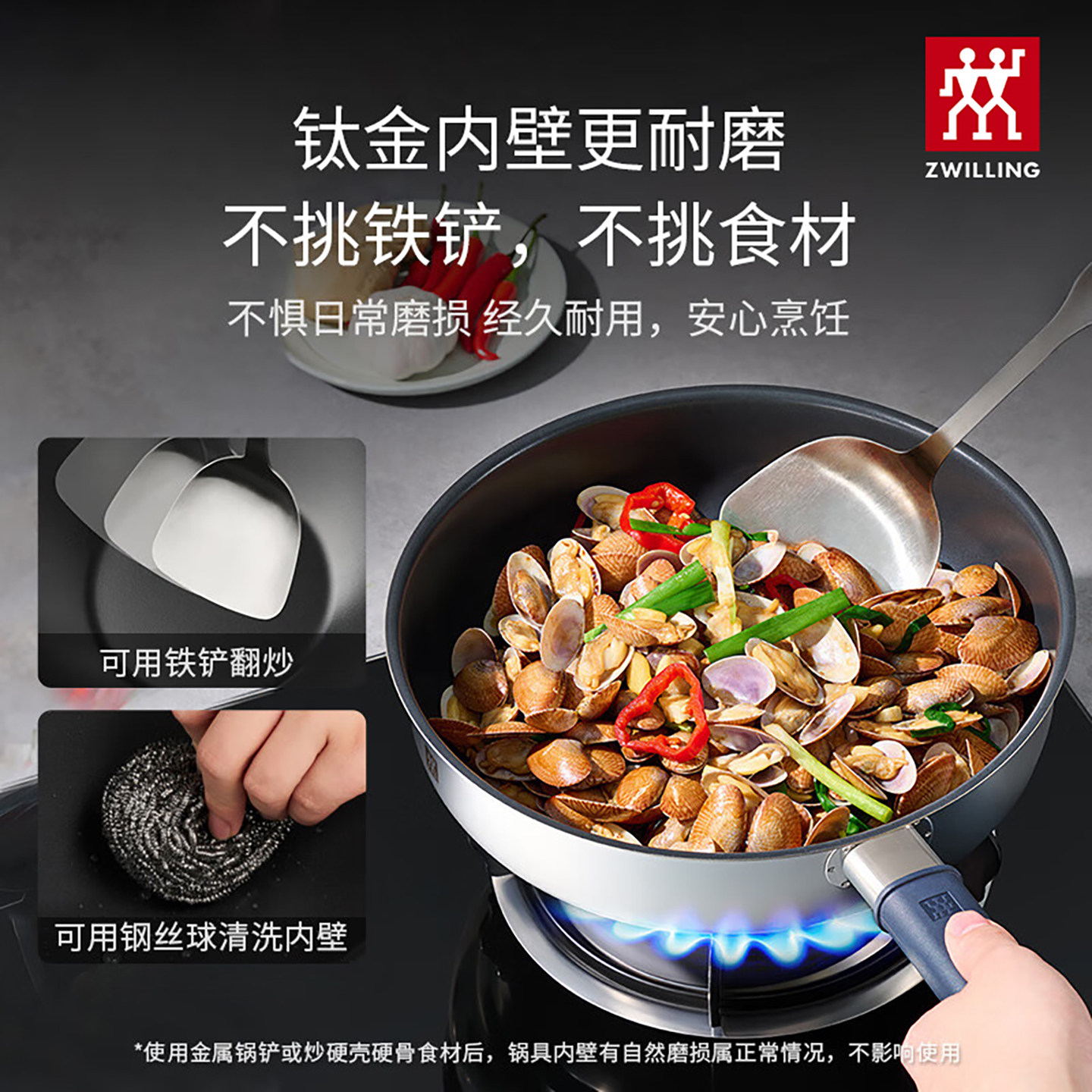 德国双立人不锈钢煎锅钛锅内壁有钛银光钛煎锅家用平底锅具26cm