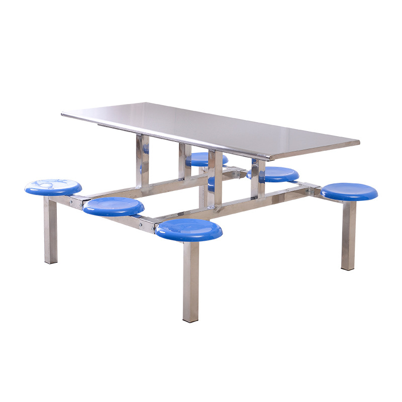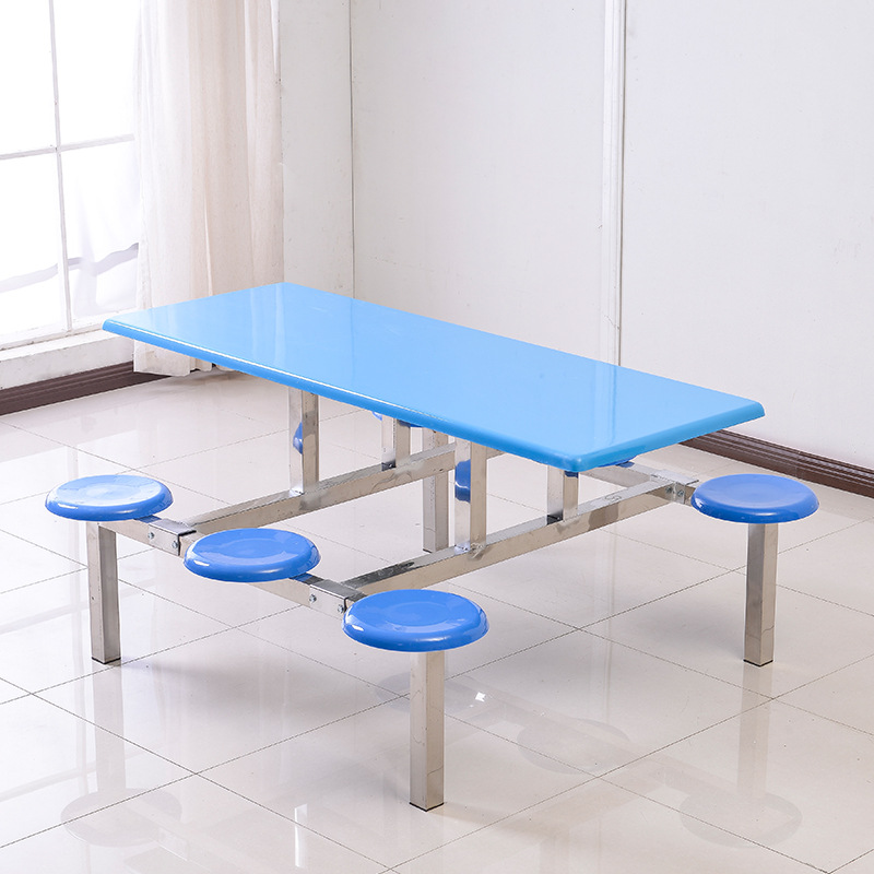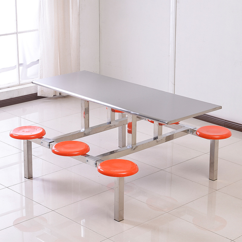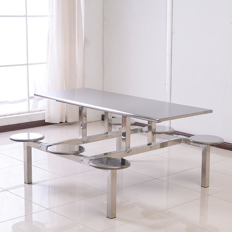 六人位公司不锈钢连体餐桌椅组合学校食堂餐桌组合厂家不锈钢圆凳