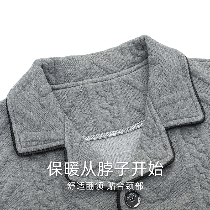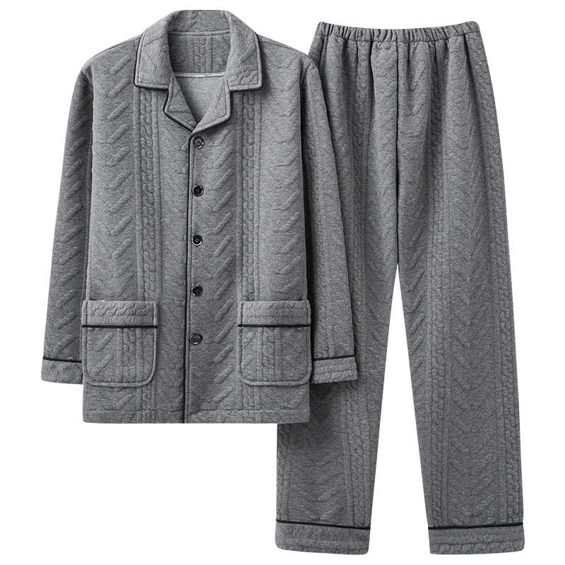 浪莎睡衣秋冬季男士纯棉中老年人爸爸加厚薄夹棉空气棉家居服套装