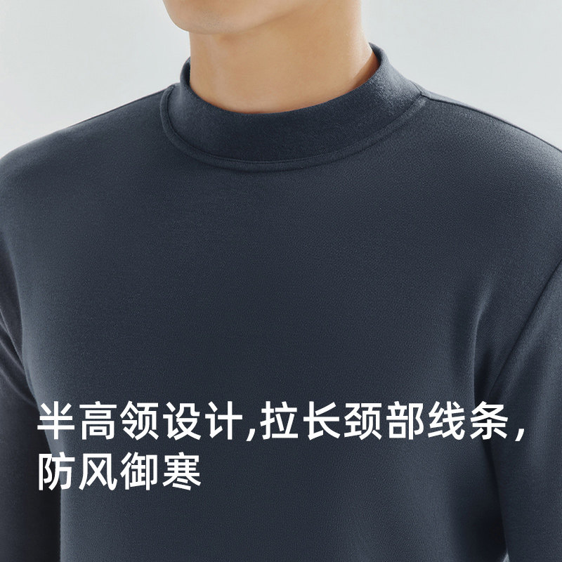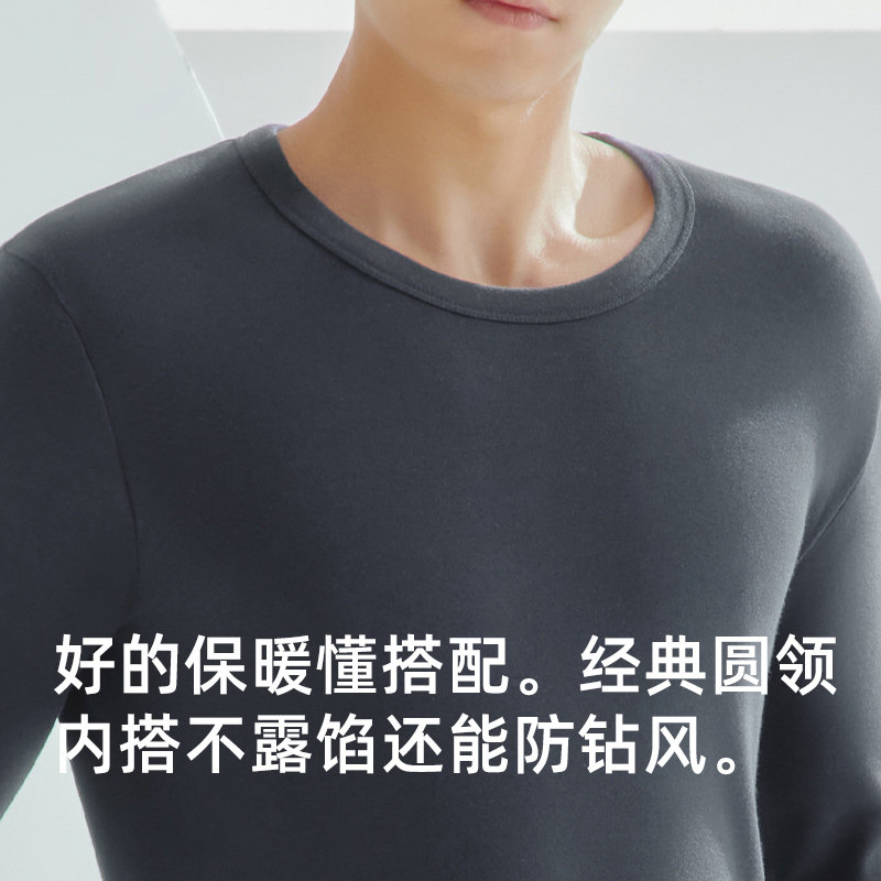 三枪100%全棉抗静电男士上衣中厚立领保暖秋衣打底棉毛衫内衣单件