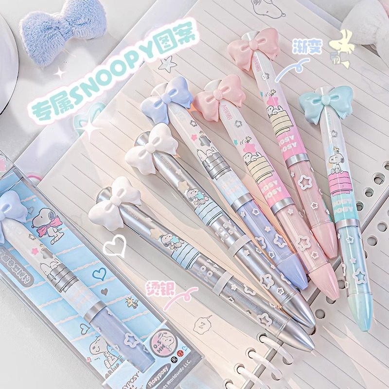 RosyPosy柔设史努比限定款双色按动中性笔做笔记专用多色合一模块笔多功能黑笔红笔高颜值ins风文具签字水笔