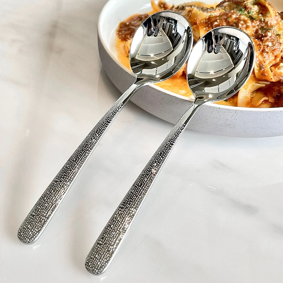 316不锈钢锤纹勺子高档西餐专用韩式勺轻奢长柄勺吃饭喝汤调羹勺