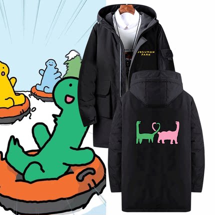 恶搞布拉吉奥可爱JOGUMAN韩国绿色小恐龙可定制外套中长款羽绒服