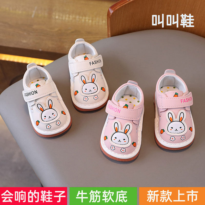 带响叫叫鞋春秋女宝宝公主鞋婴儿学步鞋软底防滑女童鞋子0-1一岁2