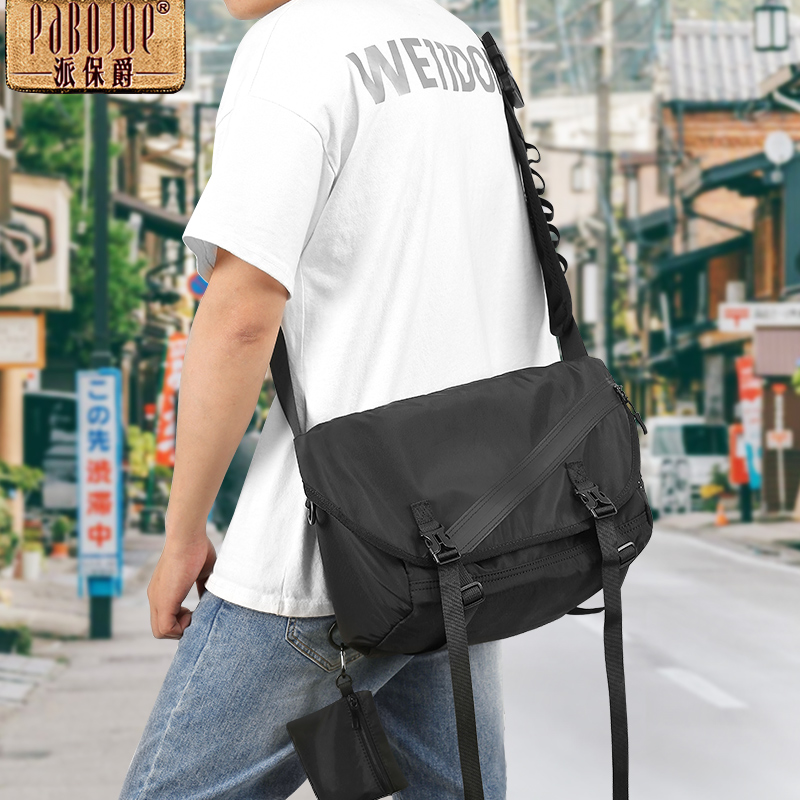 Pabojoe新款斜挎包男休闲单肩包潮流工装包大容量帆布包户外背包