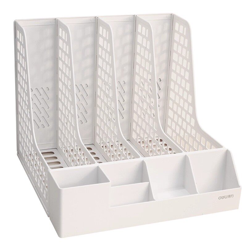 得力书架书立架彩色文件架笔筒A4文件置物架创意四联桌面文件收纳架文件框四栏办公室学生资料收纳整理分类