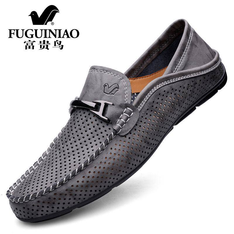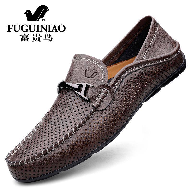 富贵鸟男鞋秋季新款真皮商务休闲皮鞋男士透气软底一脚蹬豆豆鞋男