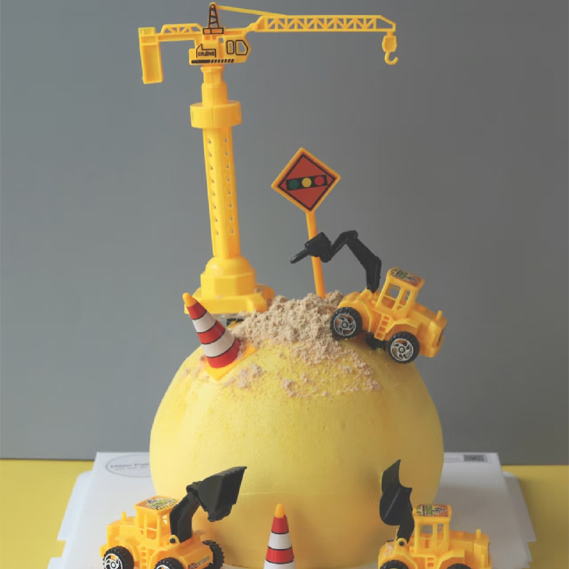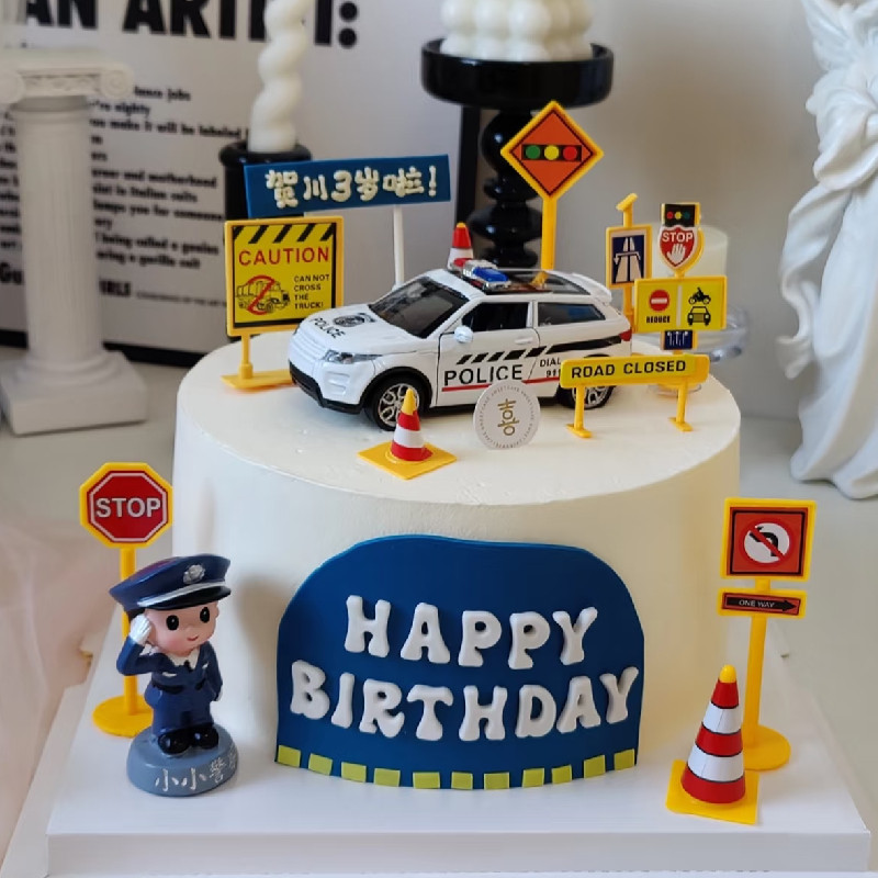 公路标识锥桶交通路障蛋糕装饰摆件塔吊台工程车儿童周岁生日公仔