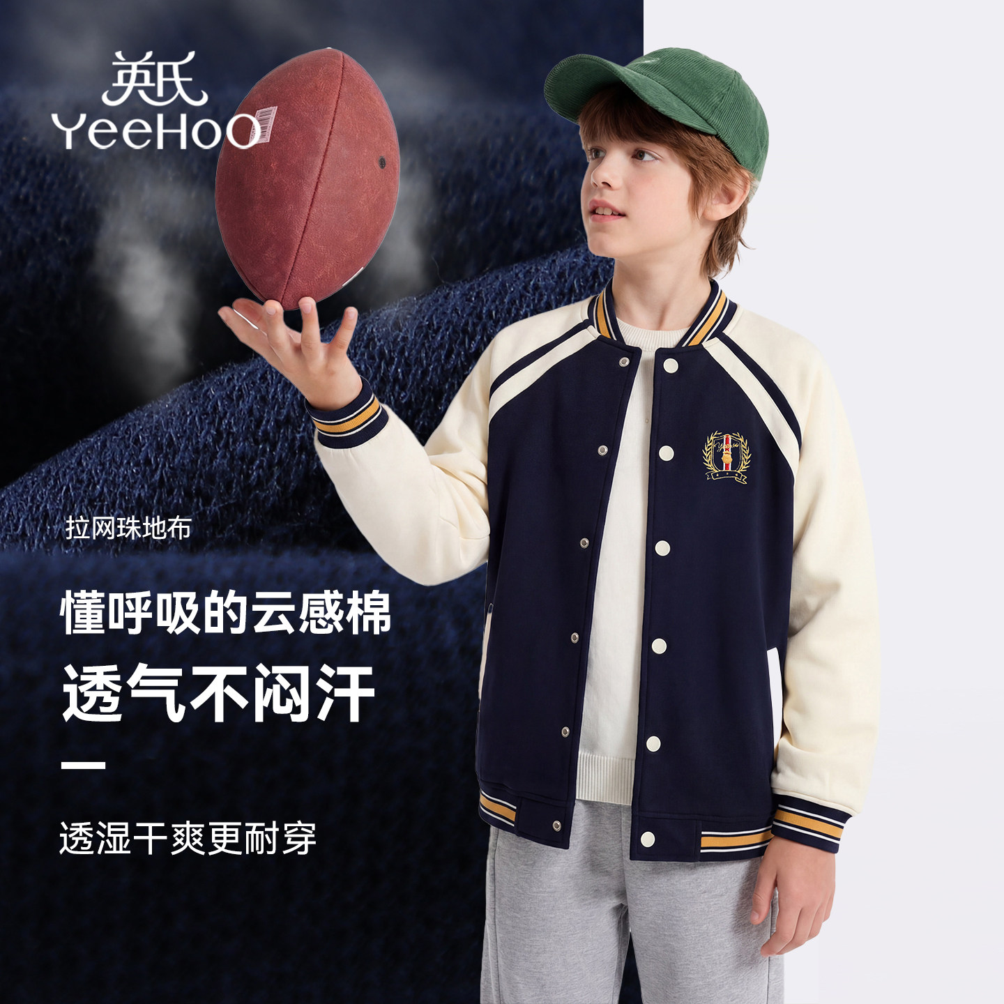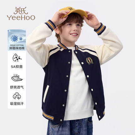 【5A级抗菌】英氏儿童棒球服男童春装外套2026新款中大童校服外套