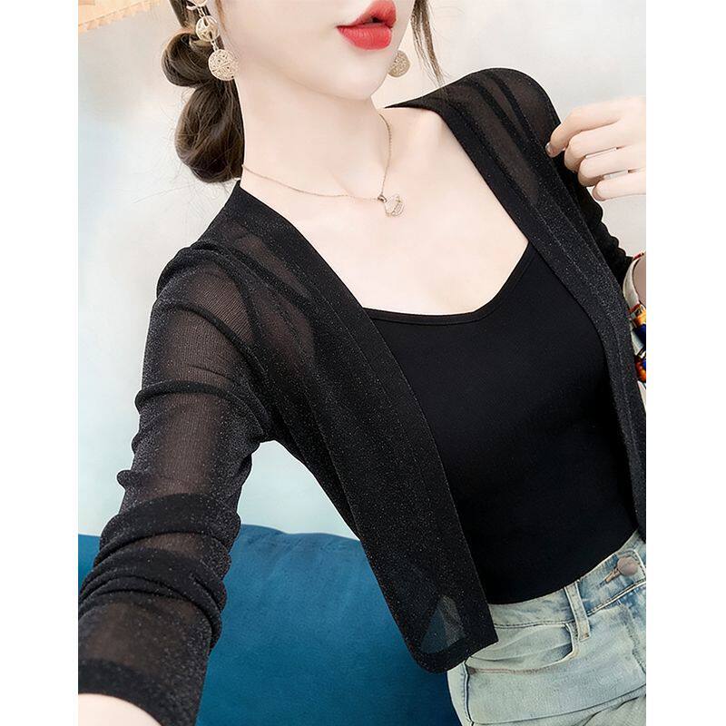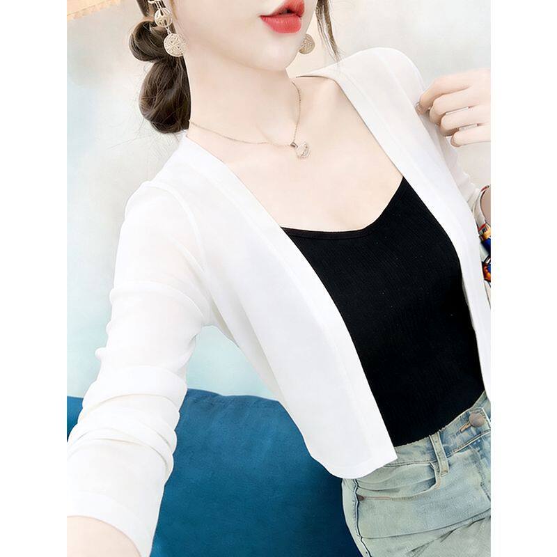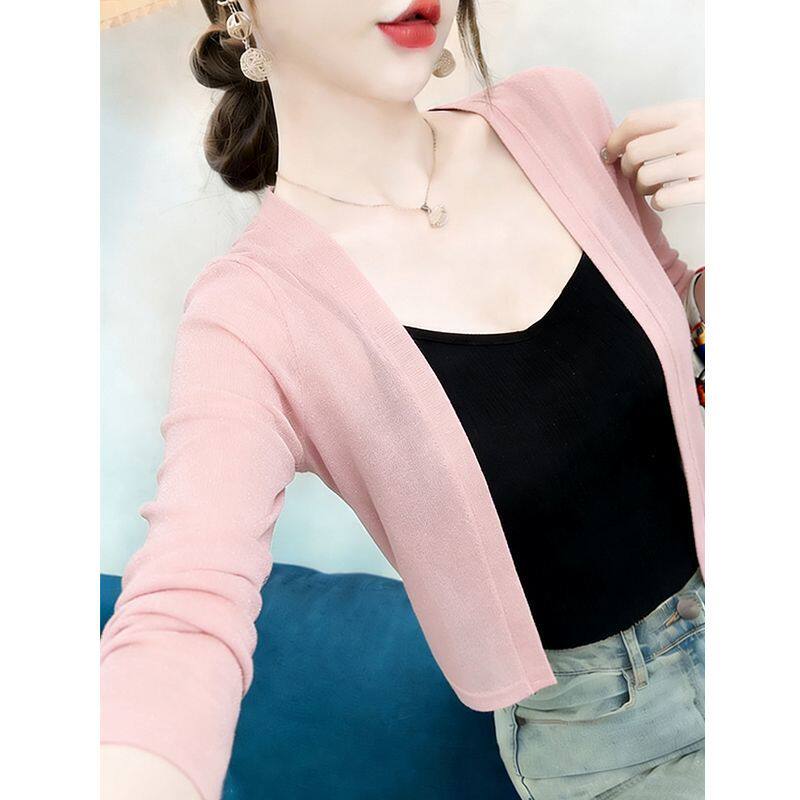 夏季薄款外搭冰丝开衫女短款防晒披肩配裙子吊带的小坎肩空调衫