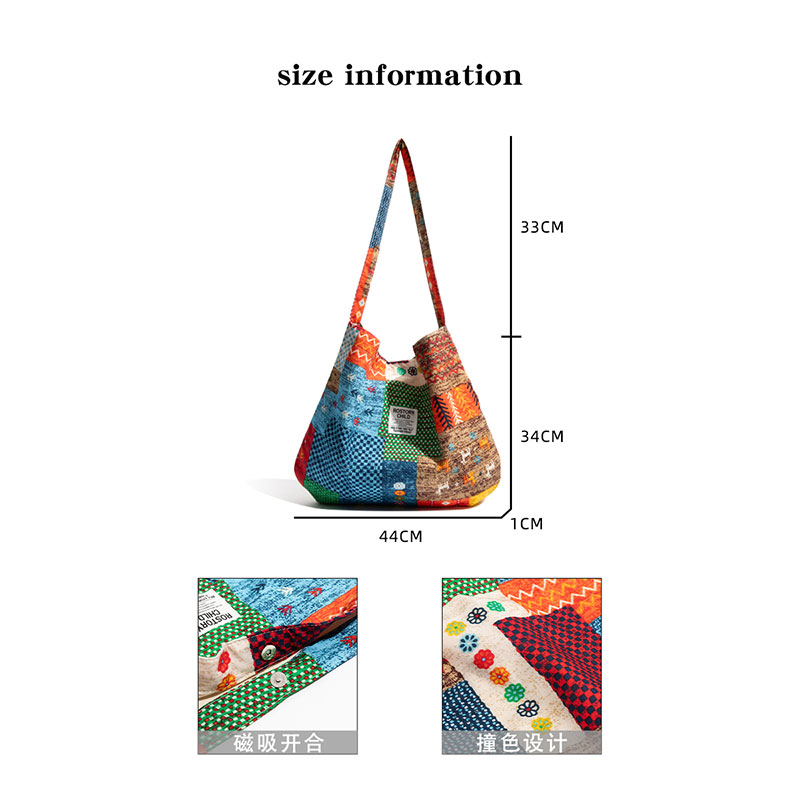 橙子少女复古拼色托特包波西米亚风帆布斜挎包小个子单肩斜跨包包