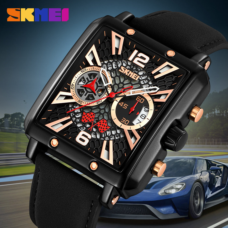 时刻美创意镂空表盘皮带方形石英表男士商务休闲外贸手表