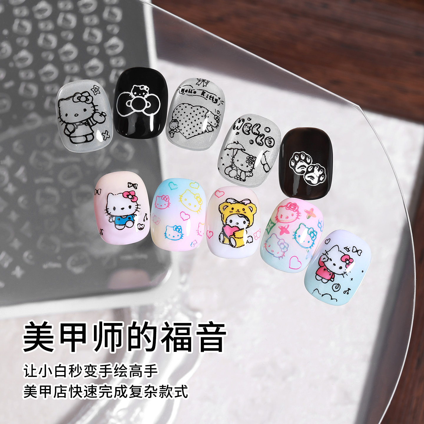 美甲店专用印花钢板HelloKitty猫咪模板硅胶印章精美图案转印工具